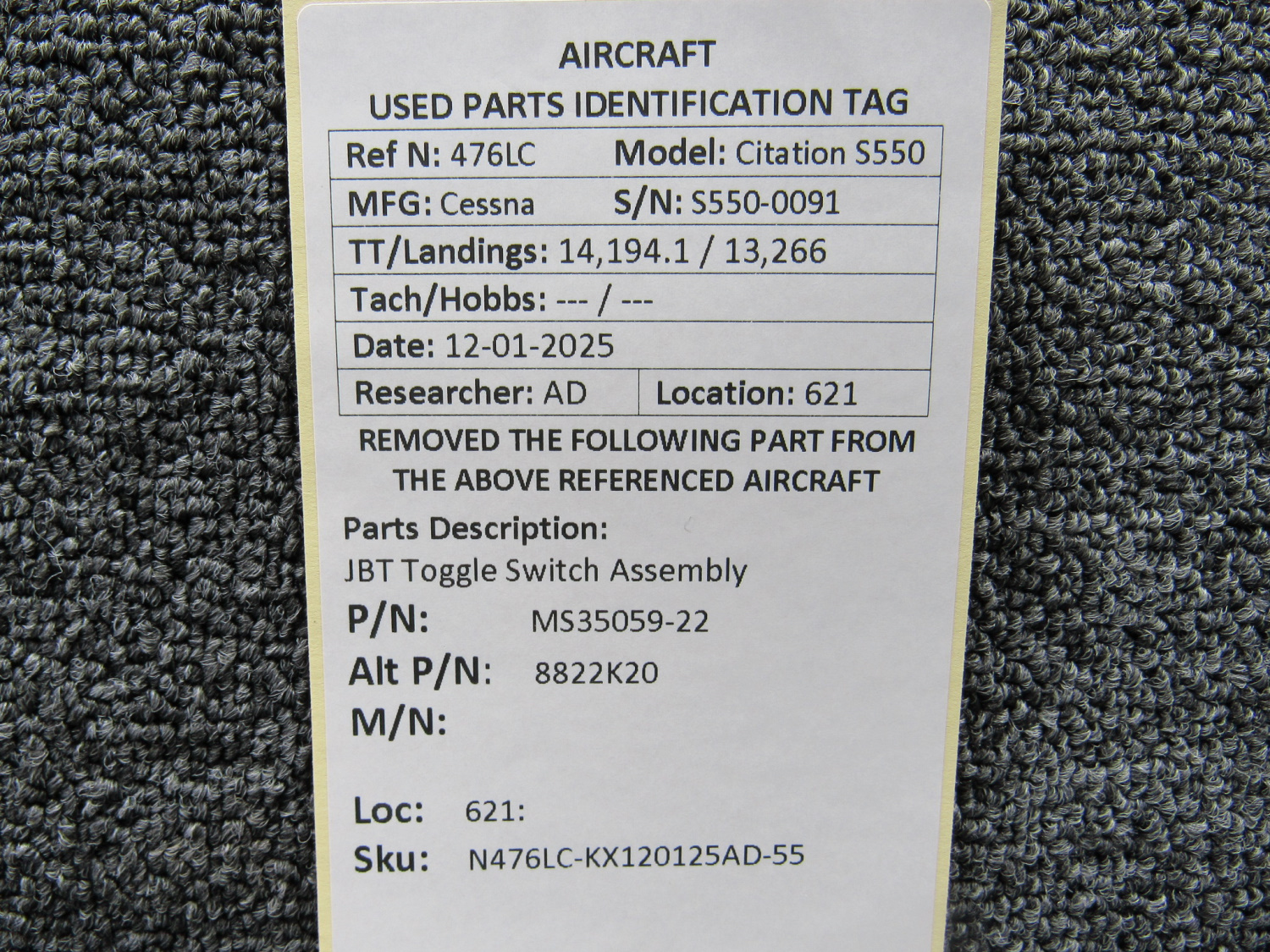 Unless specifically noted, most of our used airplane parts are sold in the condition they were removed, which means you should expect the usual signs of wear and tear.
