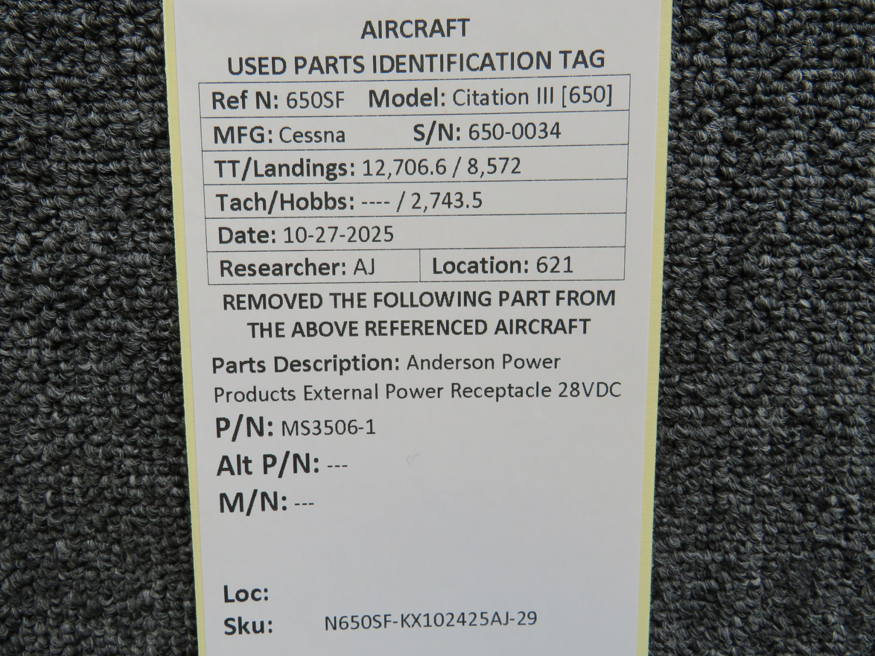 Unless specifically noted, most of our used airplane parts are sold in the condition they were removed, which means you should expect the usual signs of wear and tear.
