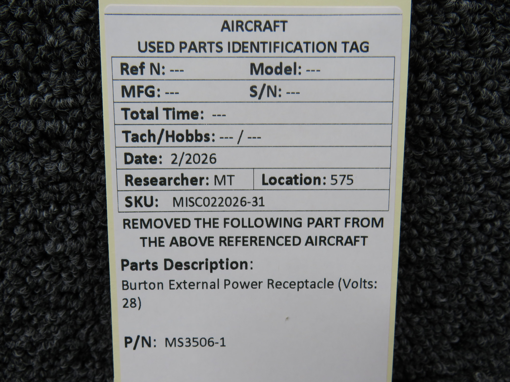 Every part is carefully inspected throughout our process and several times before it goes online. Most items are sold as-removed, just as they came off the aircraft. These parts are not functionally tested. What we do provide is clear photos, full traceability when available, pricing that reflects the as-removed condition, and a no-nonsense 90-day return window.