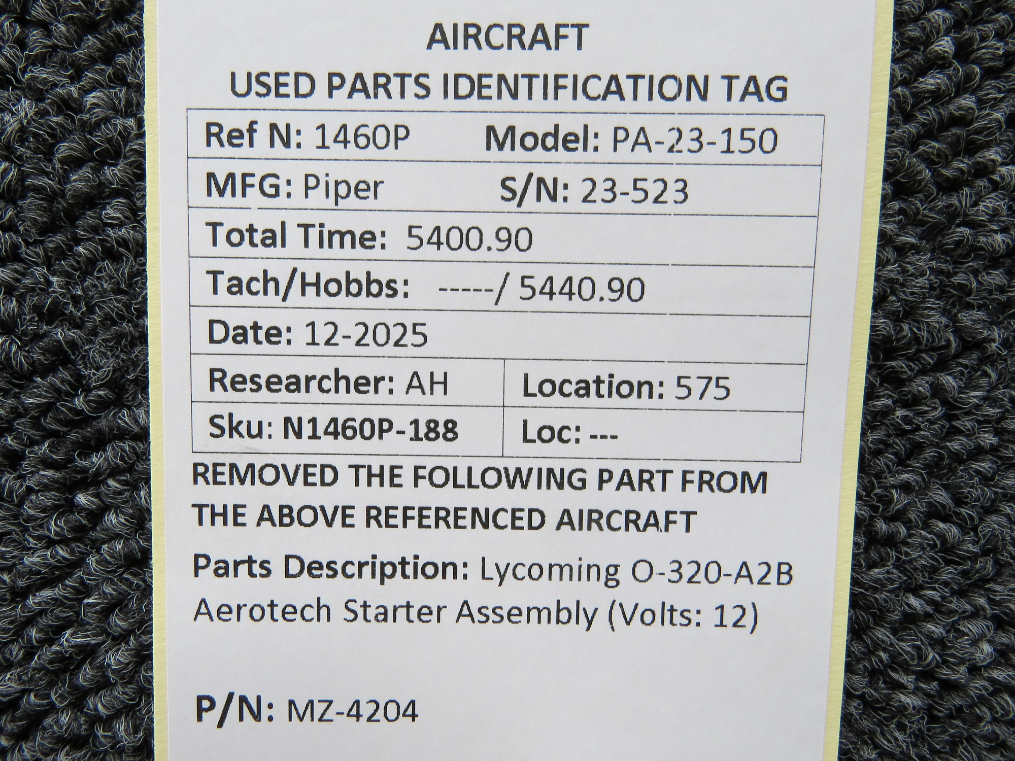 - Removed From: Lycoming O-320-A2B