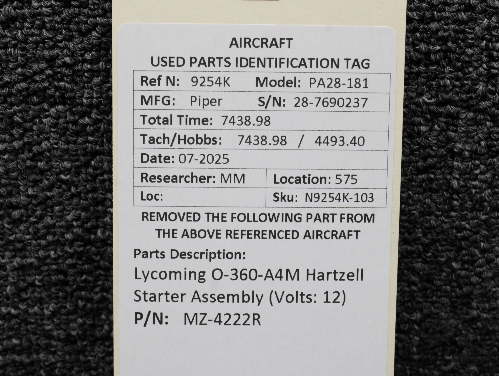 - Removed From: Lycoming O-360-A4M