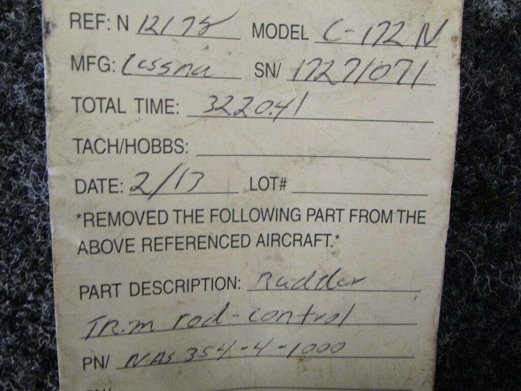 NAS354-4-1000 Cessna C172N Rudder Trim Control Rod