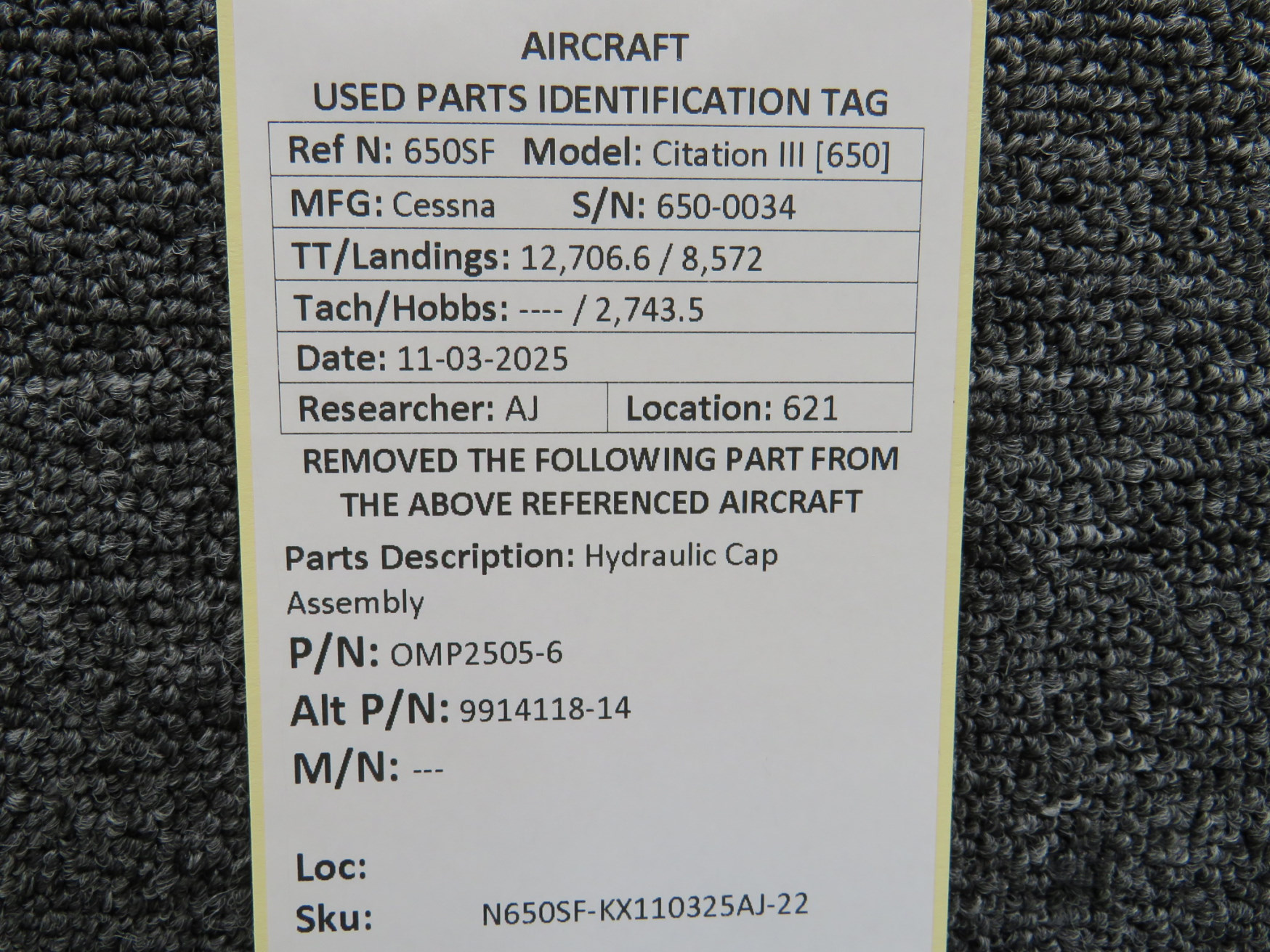 Unless specifically noted, most of our used airplane parts are sold in the condition they were removed, which means you should expect the usual signs of wear and tear.