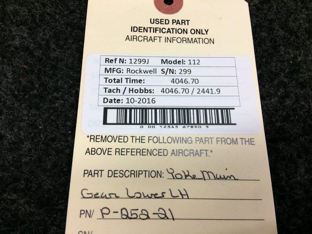 P-252-21 Rockwell 112 Main Gear Lower Yoke LH
