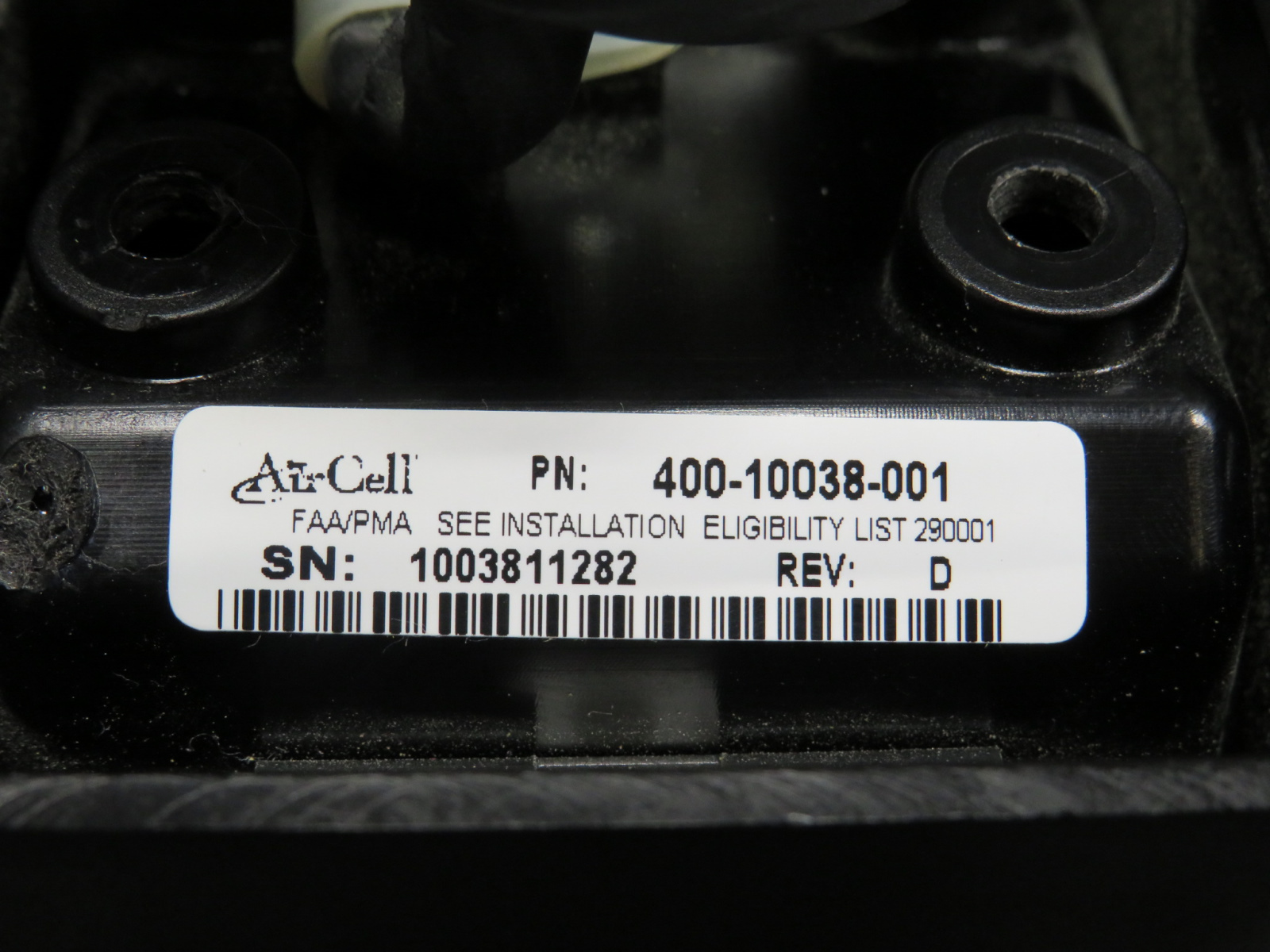 - Receiver Part Number: 400-10038-001, SN: 1003811282, Rev: D