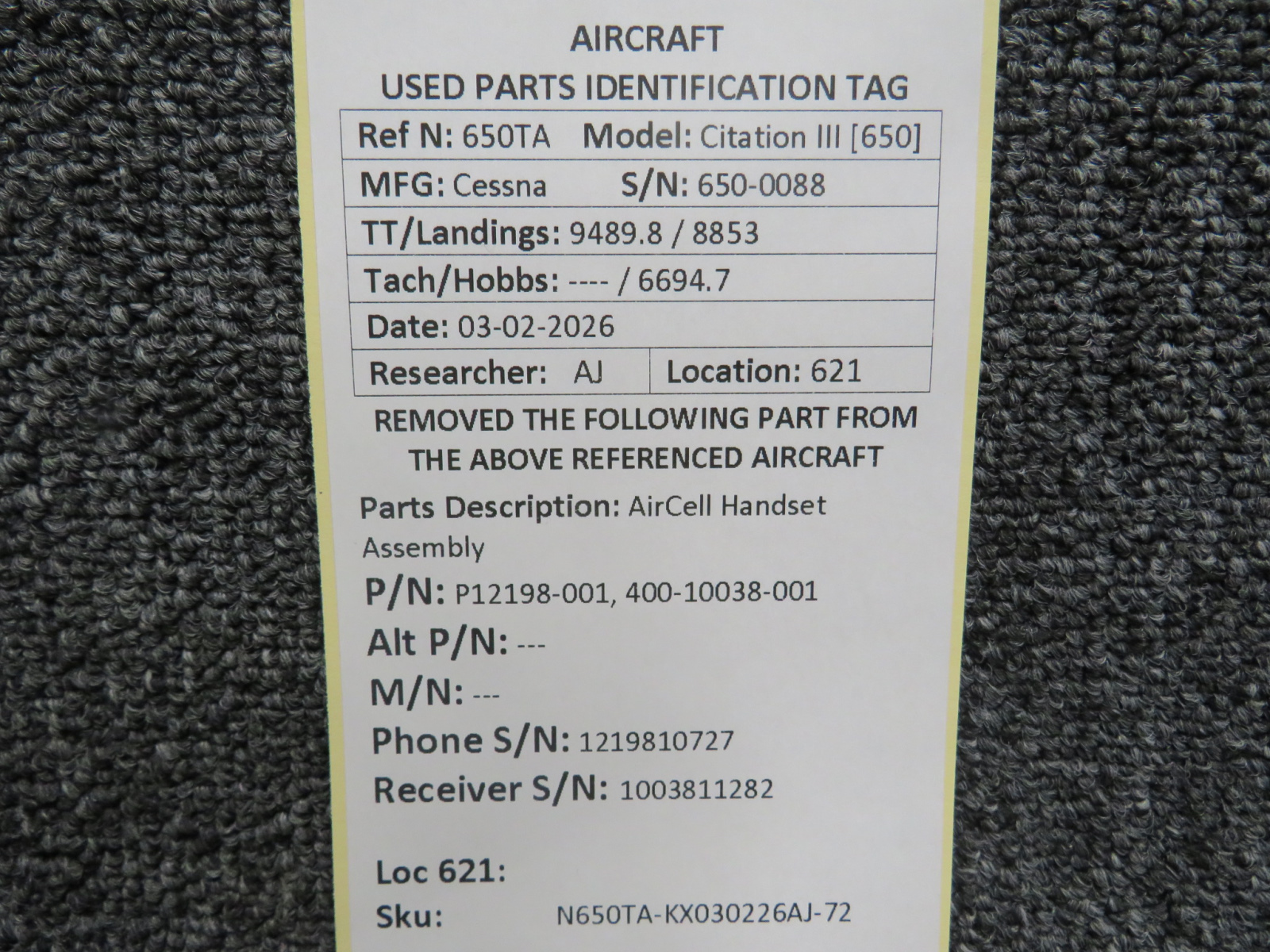 Every part is carefully inspected throughout our process and several times before it goes online. Most items are sold as-removed, just as they came off the aircraft. These parts are not functionally tested. What we do provide is clear photos, full traceability when available, pricing that reflects the as-removed condition, and a no-nonsense 90-day return window.