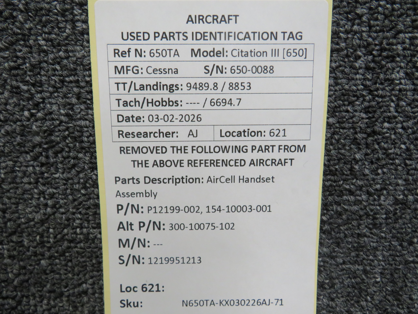 Every part is carefully inspected throughout our process and several times before it goes online. Most items are sold as-removed, just as they came off the aircraft. These parts are not functionally tested. What we do provide is clear photos, full traceability when available, pricing that reflects the as-removed condition, and a no-nonsense 90-day return window.