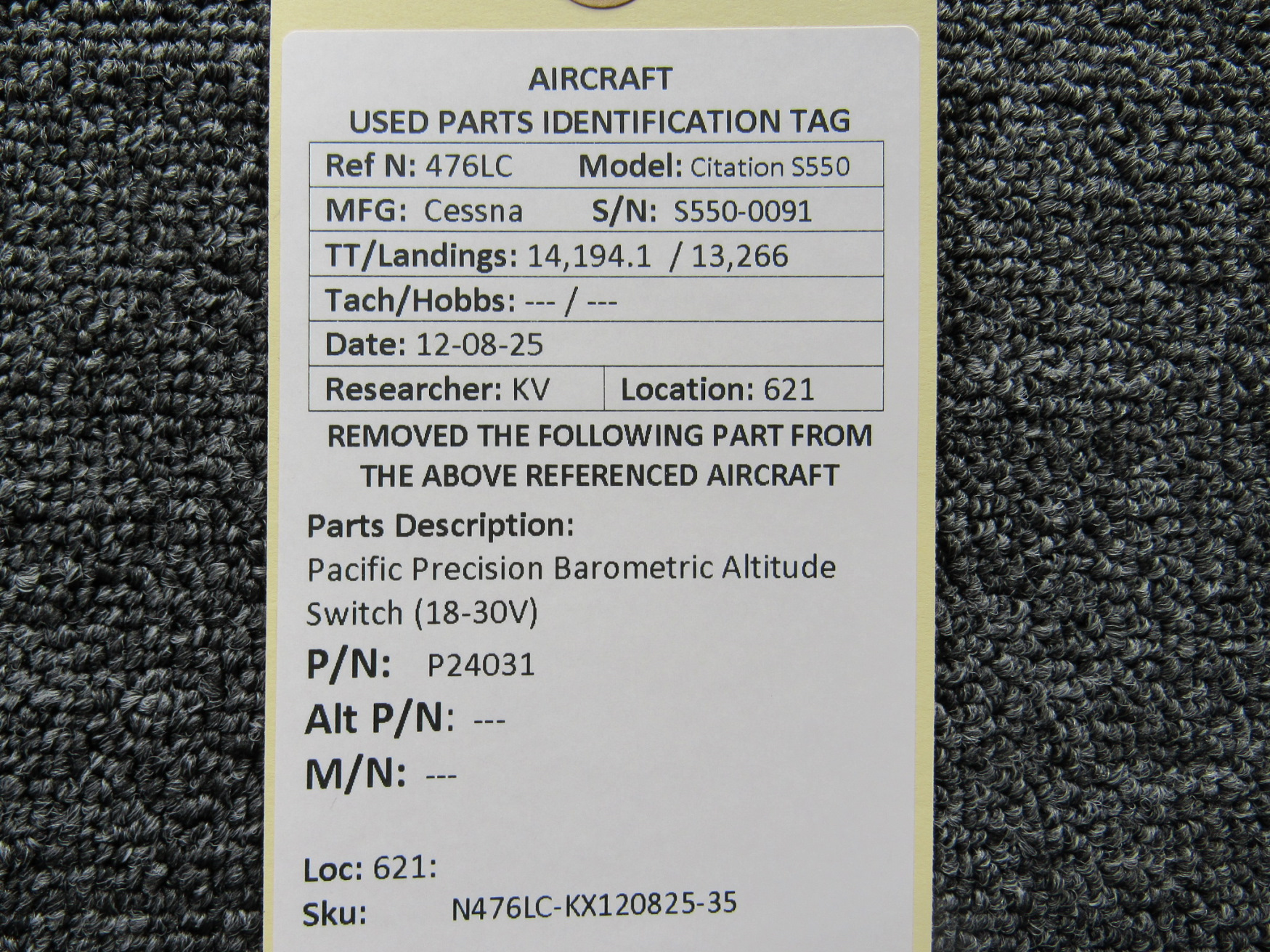 Part removed from aircraft in its original, unaltered state. Most of the inventory available from BAS Part Sales is in As-Removed condition. We removed it from the aircraft in working condition and expect it to pass inspection. As-Removed items come with our 90-day Money-Back Guarantee. Read More