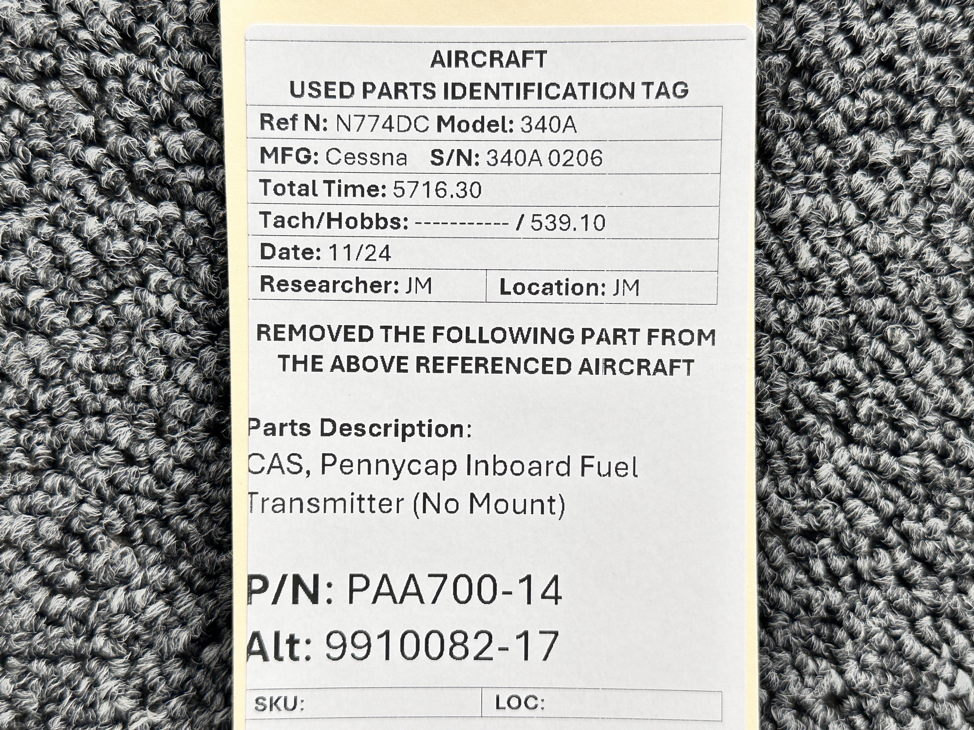 Unless specifically noted, most of our used airplane parts are sold in the condition they were removed, which means you should expect the usual signs of wear and tear.