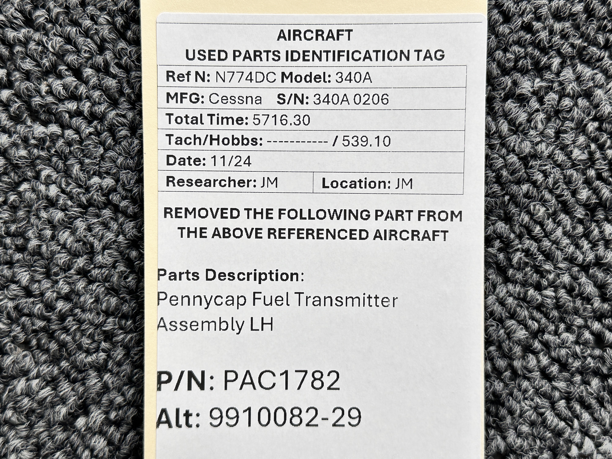 Unless specifically noted, most of our used airplane parts are sold in the condition they were removed, which means you should expect the usual signs of wear and tear.