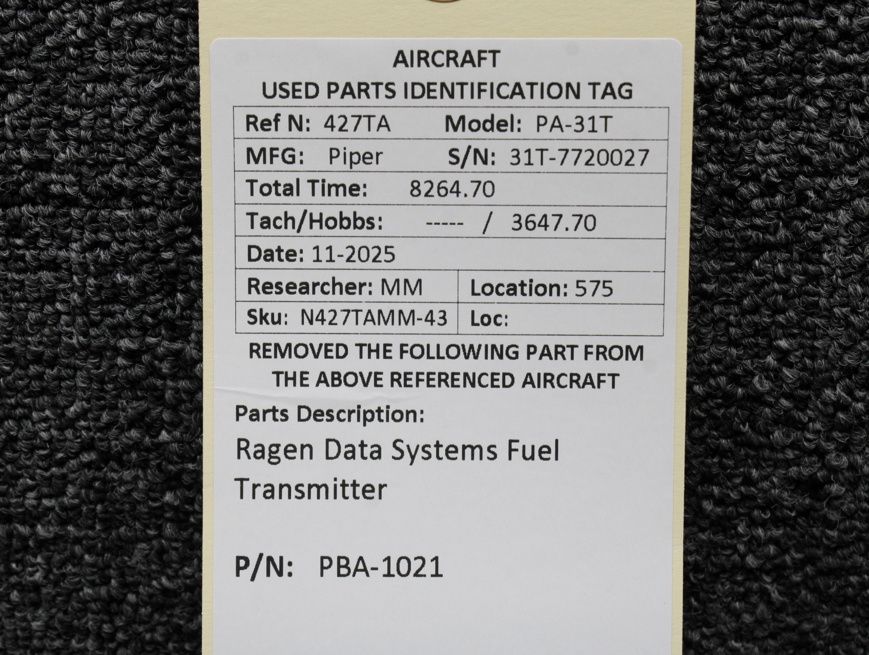 Unless specifically noted, most of our used airplane parts are sold in the condition they were removed, which means you should expect the usual signs of wear and tear.