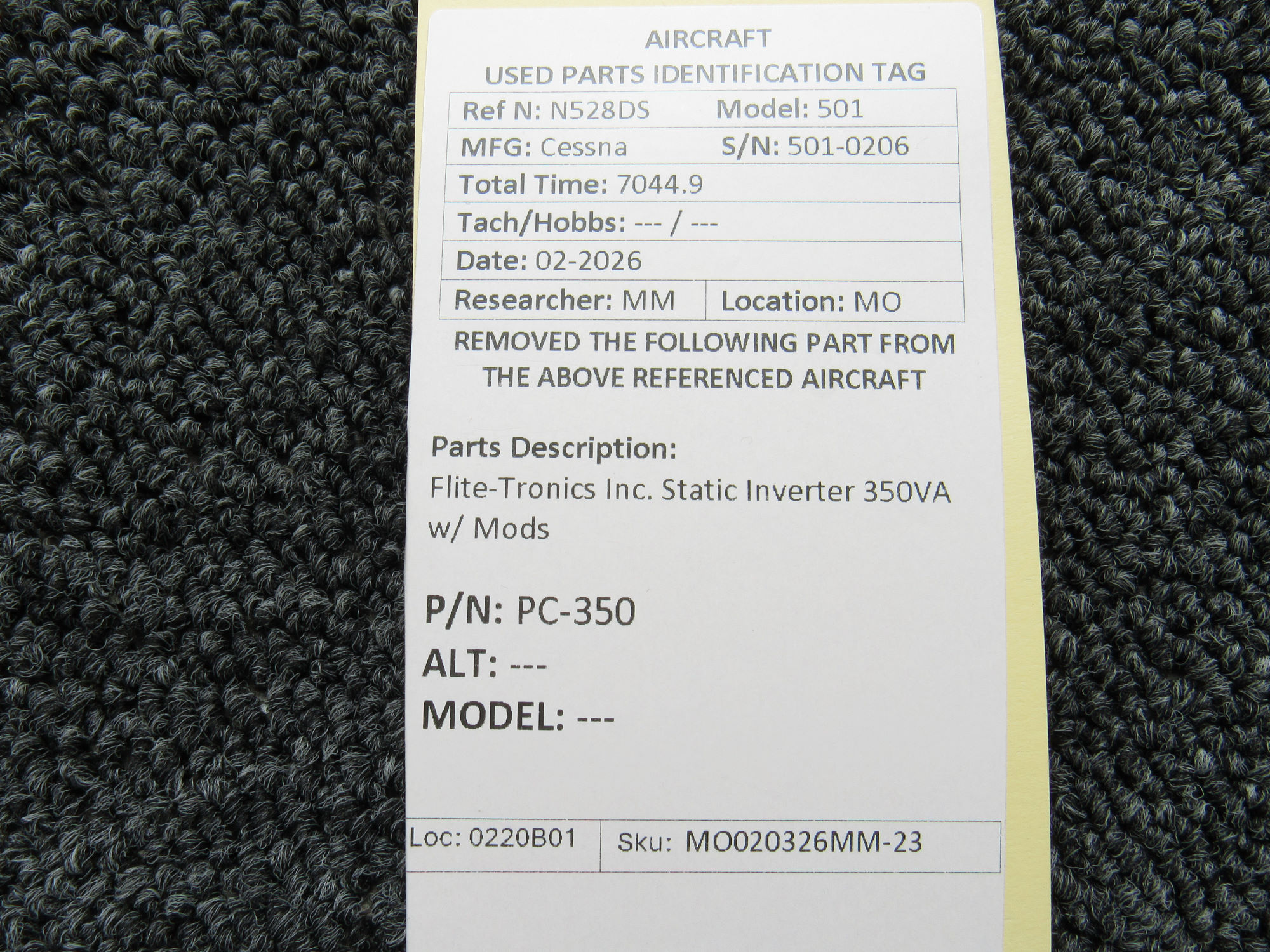 Every part is carefully inspected throughout our process and several times before it goes online. Most items are sold as-removed, just as they came off the aircraft. These parts are not functionally tested. What we do provide is clear photos, full traceability when available, pricing that reflects the as-removed condition, and a no-nonsense 90-day return window.