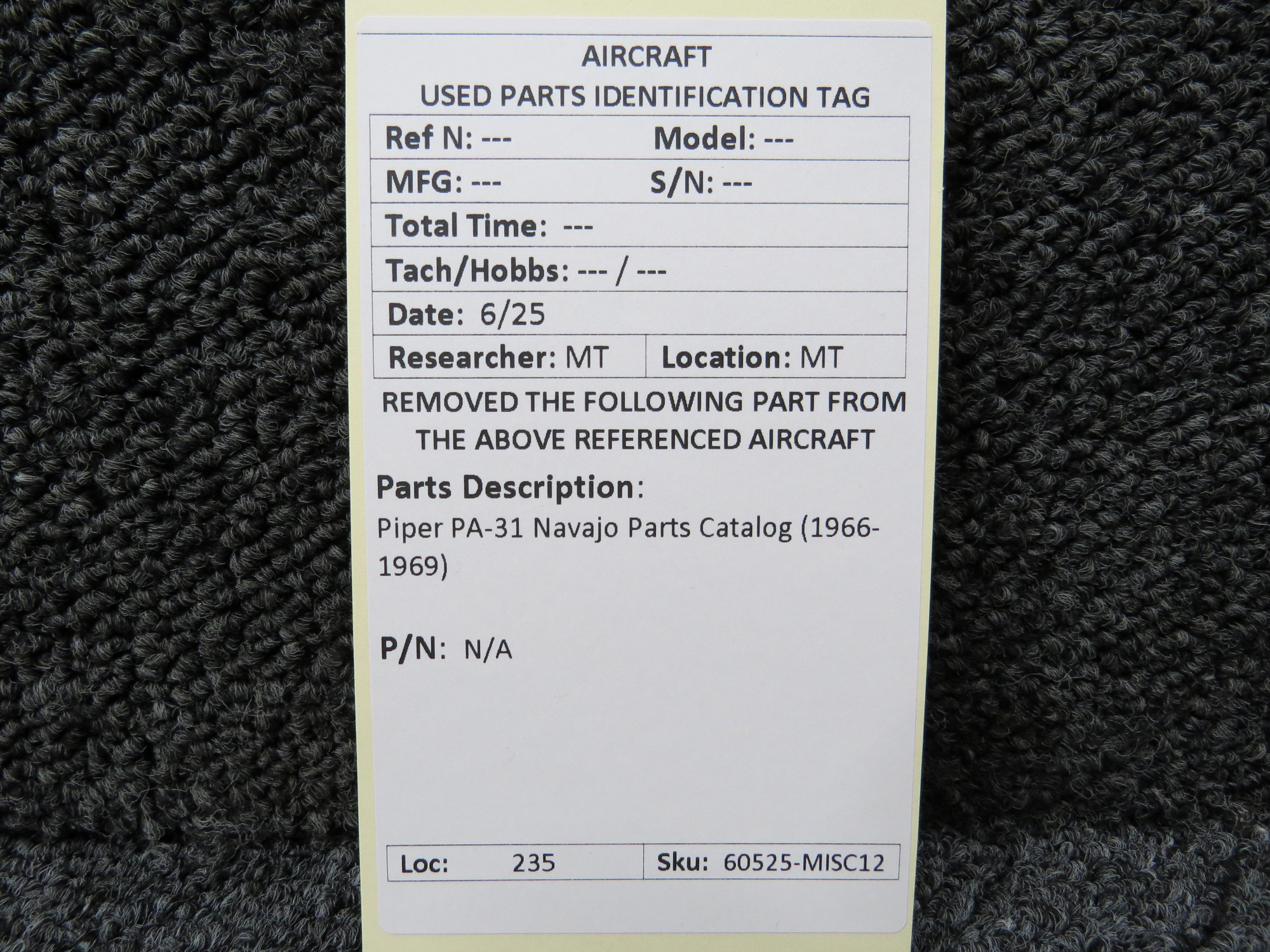 Unless specifically noted, most of our used airplane parts are sold in the condition they were removed, which means you should expect the usual signs of wear and tear.