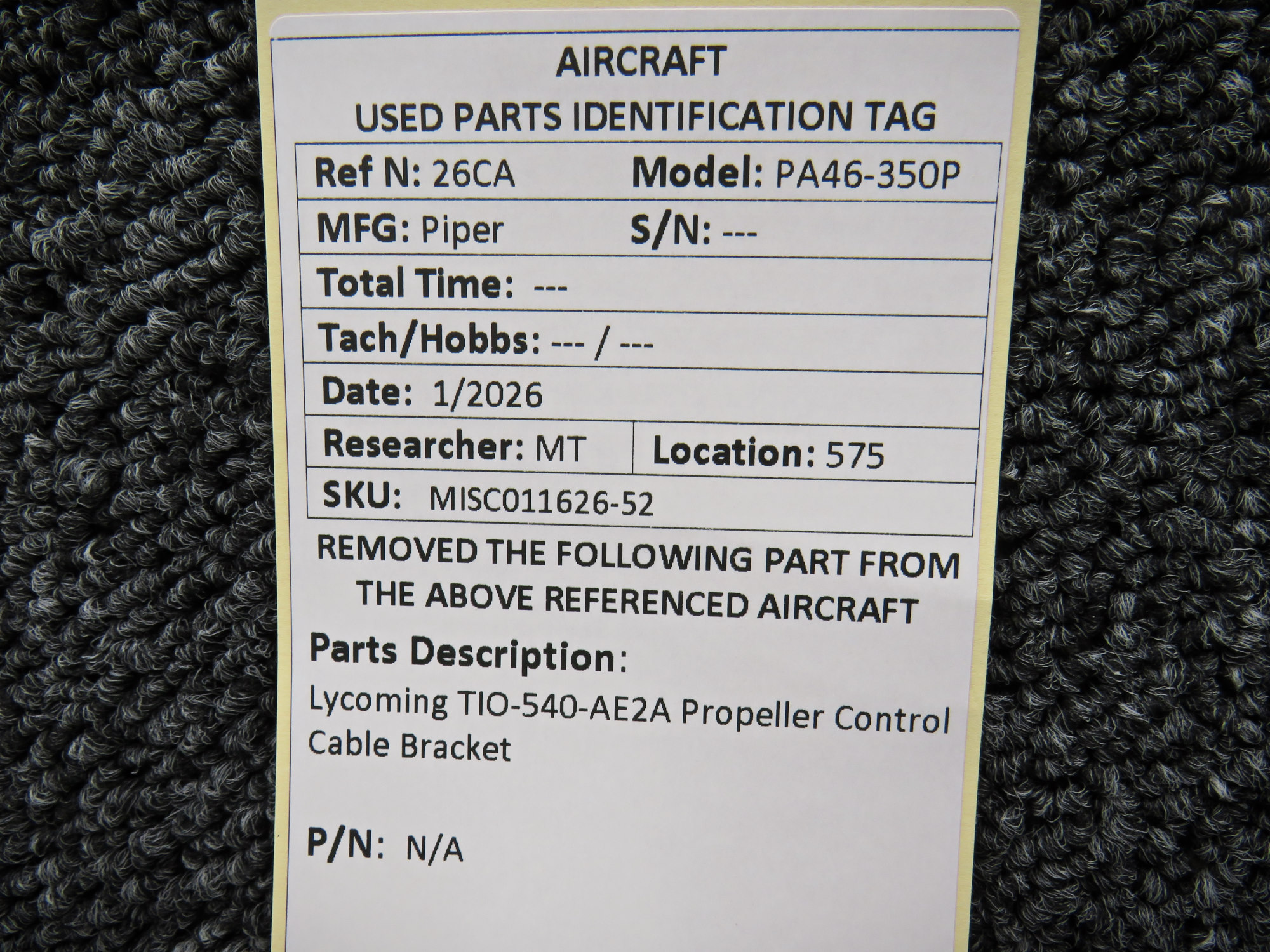 - Removed From: Lycoming TIO-540-AE2A