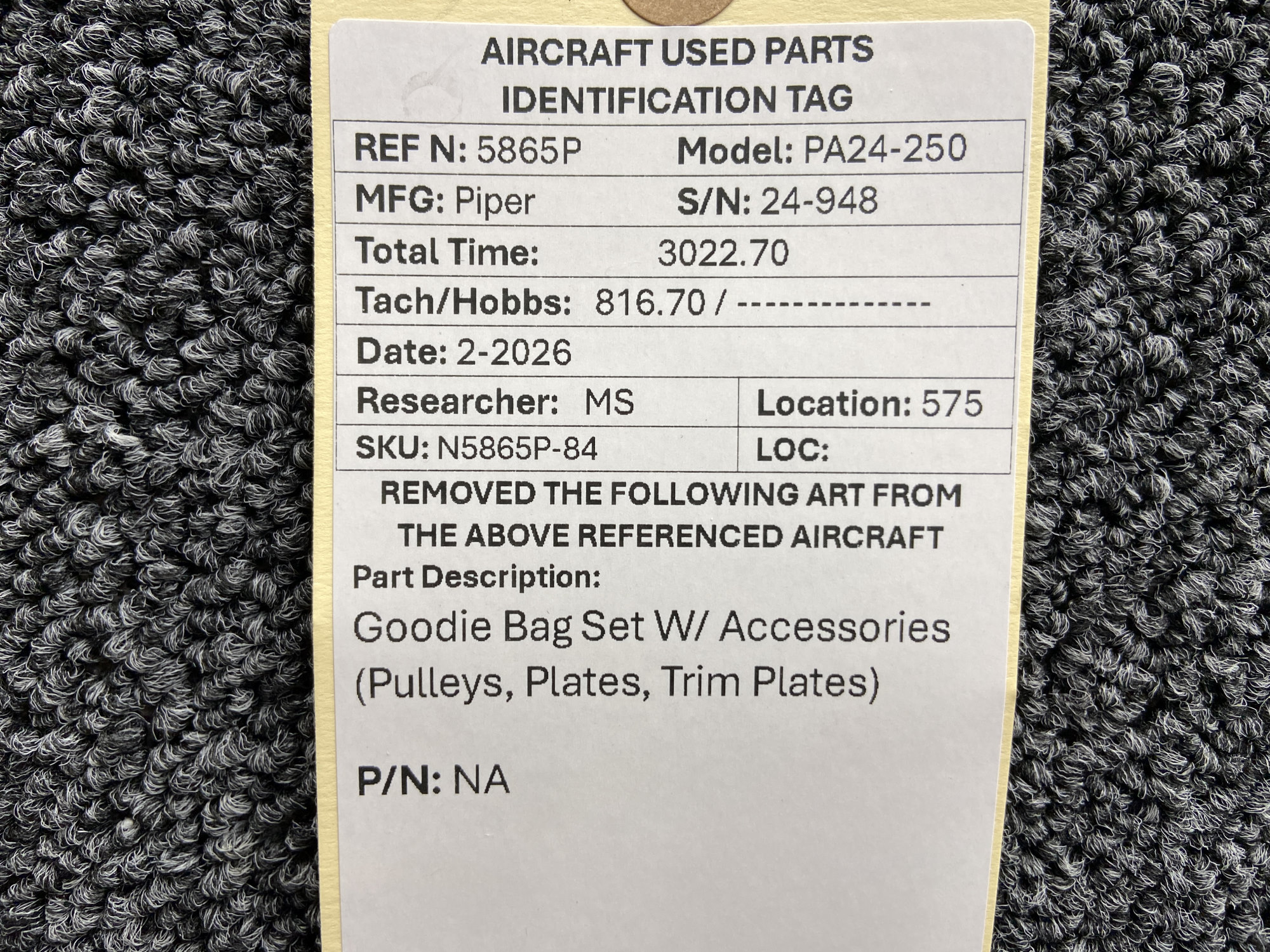 - Includes pulleys, mounting plate, trim and access plates for the Piper PA24-250