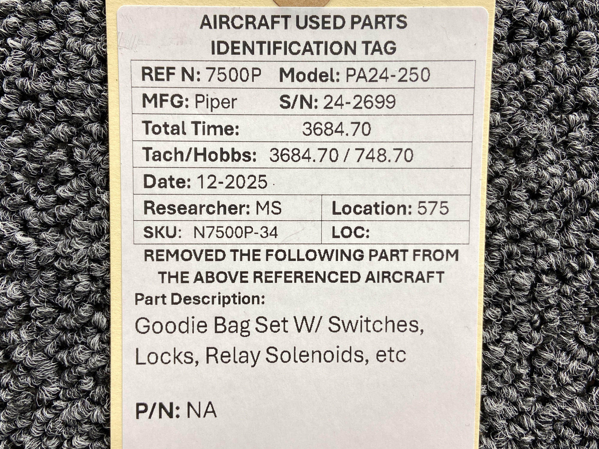 - Includes switches, locks, relay solenoid and more for the Piper PA24-250