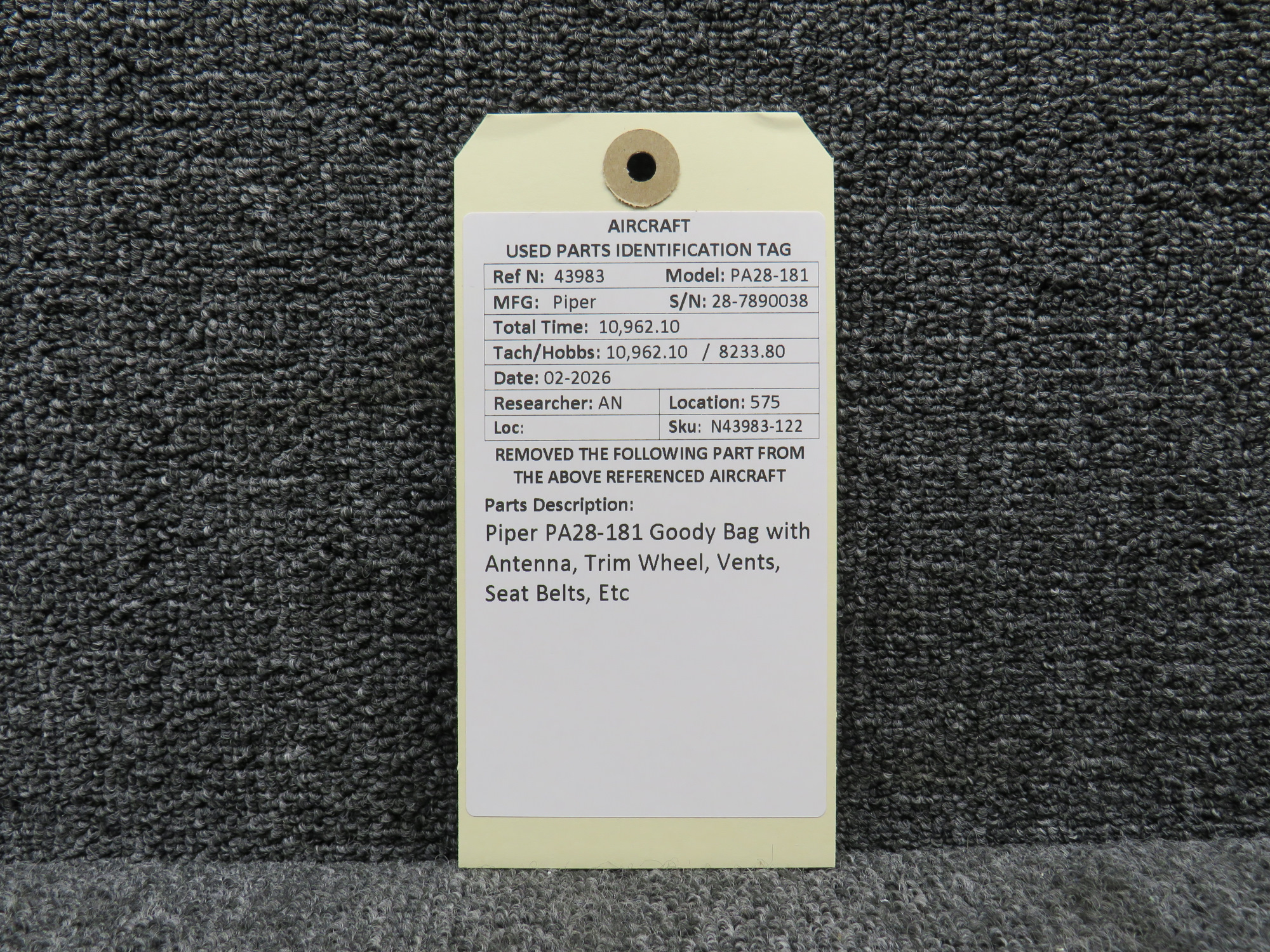 - Includes antenna, trim wheel, vents, seat belts and more for the Piper PA28-181