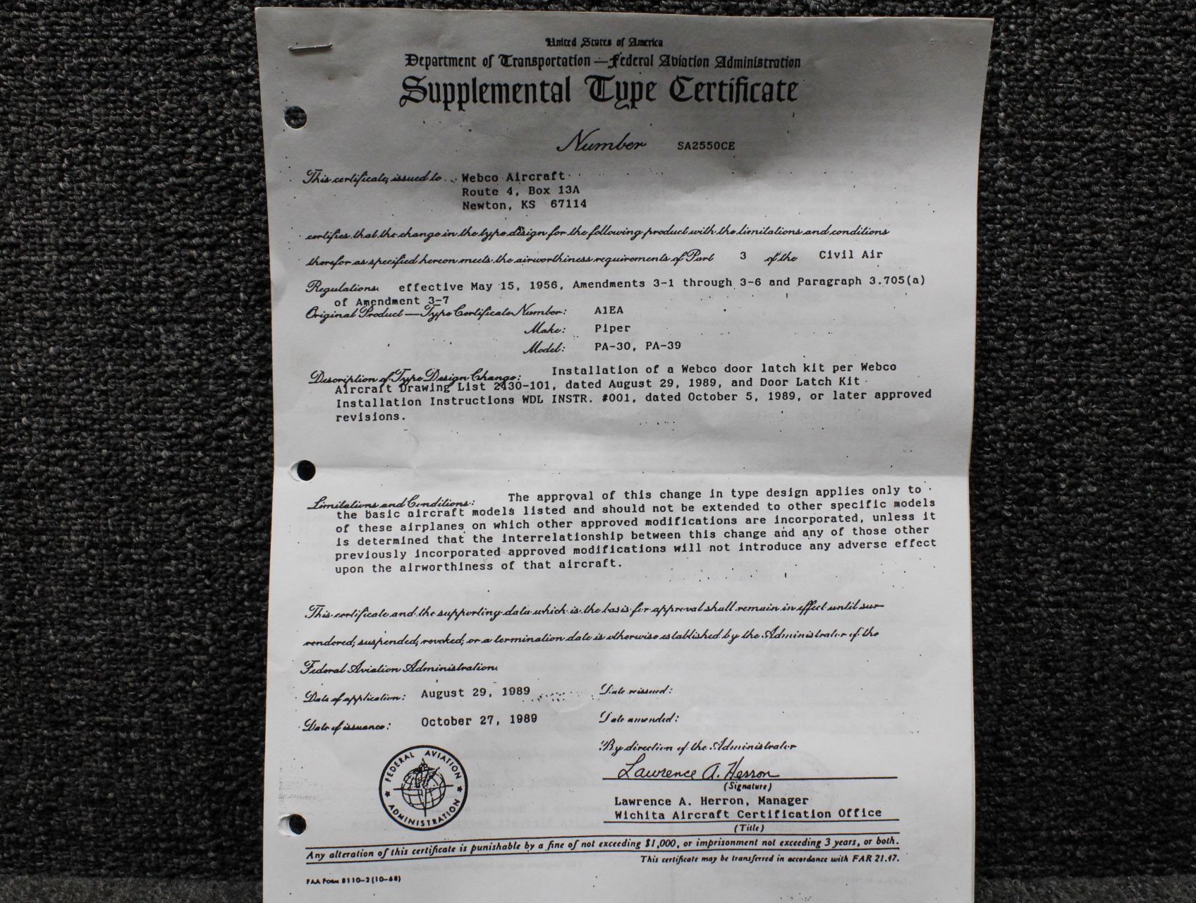 - STC Number: SA2550CE