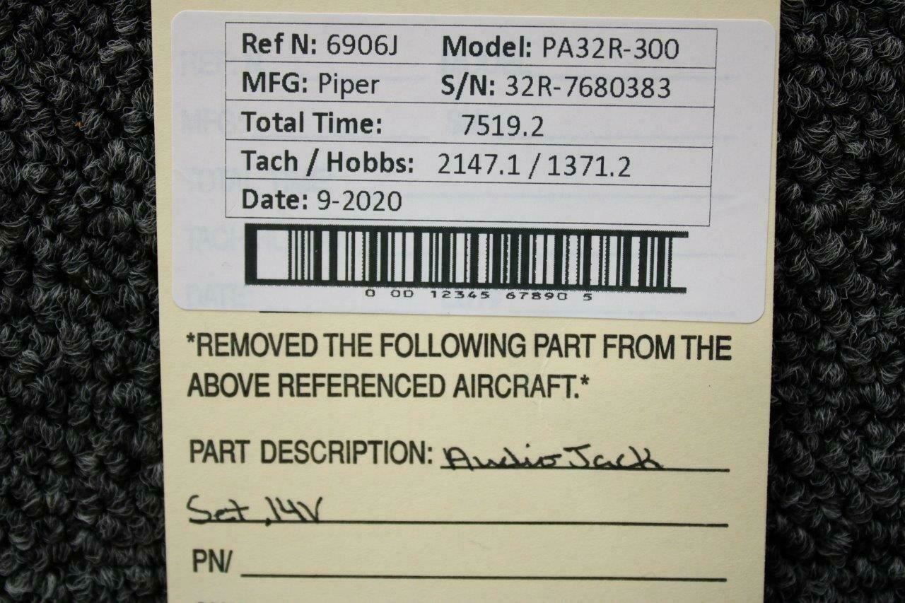 This is a Piper PA32R-300 Audio Jack Set of 4 that is for sale. Guaranteed to work and pass your inspection or your money back with our 90-Day Warranty.