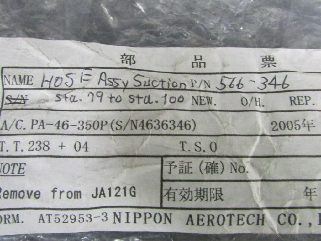 566-346 (Use: 566-645) Piper PA46-350P Hose Suction Assembly (SA)