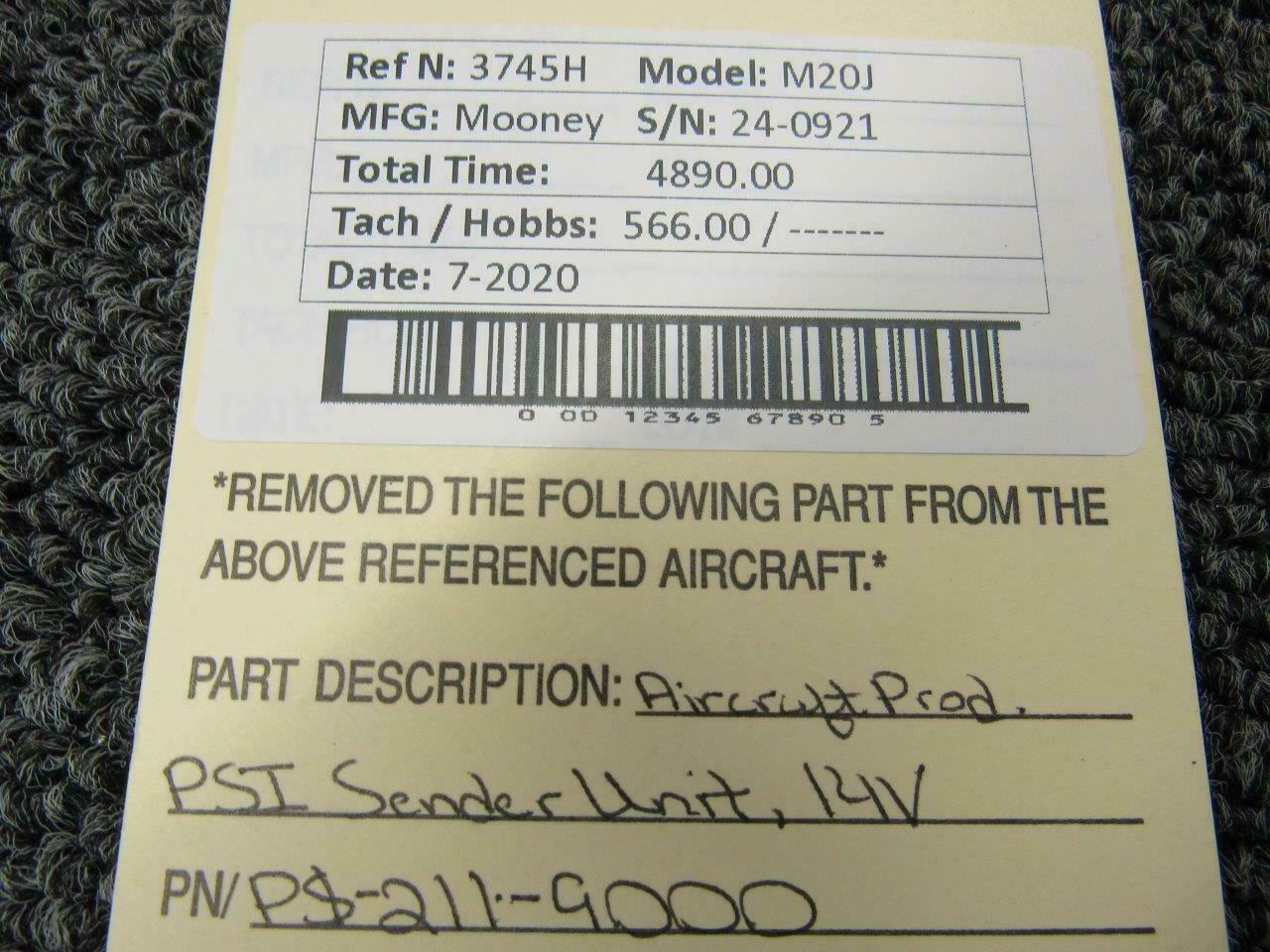 PS-211-9000 Mooney M20J Mitchell PSI Sender Unit (Volts: 14)