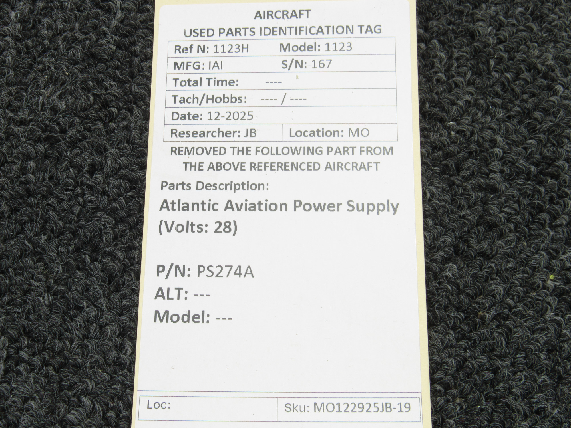 Unless specifically noted, most of our used airplane parts are sold in the condition they were removed, which means you should expect the usual signs of wear and tear.