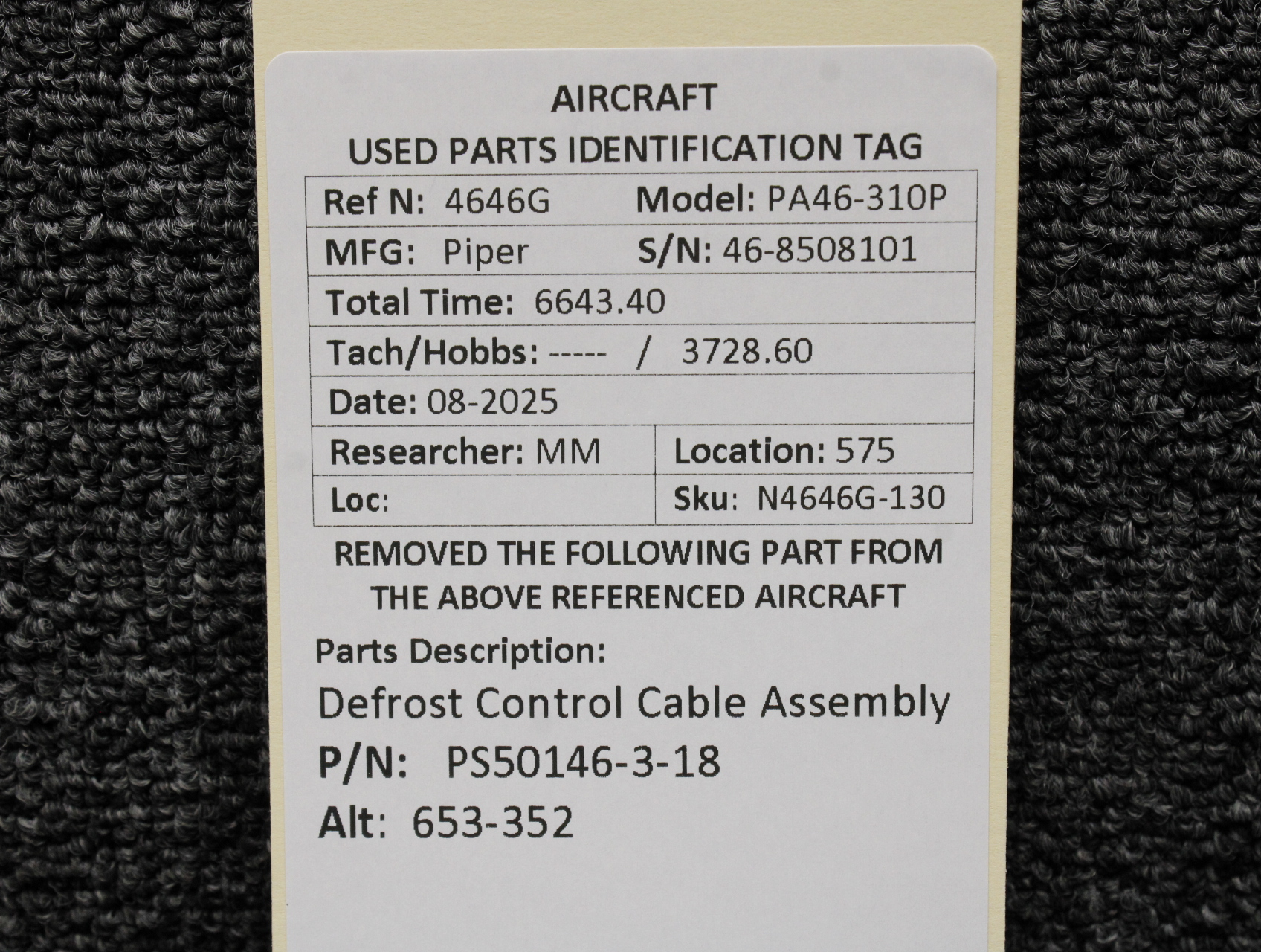 Every part is carefully inspected throughout our process and several times before it goes online. Most items are sold as-removed, just as they came off the aircraft. These parts are not functionally tested. What we do provide is clear photos, full traceability when available, pricing that reflects the as-removed condition, and a no-nonsense 90-day return window.