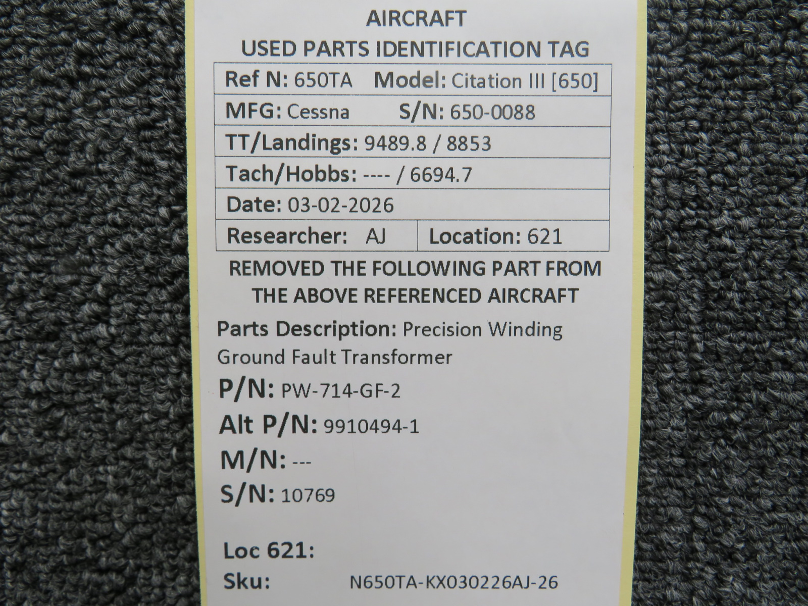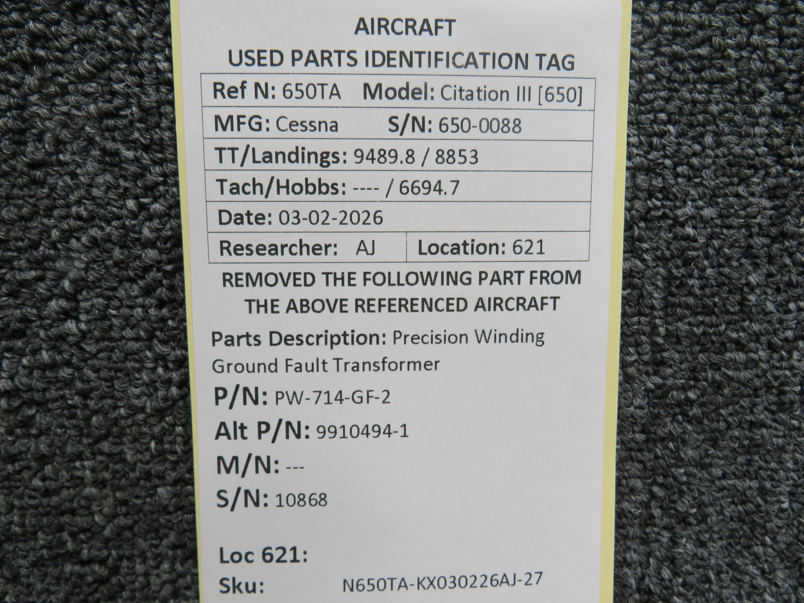 Every part is carefully inspected throughout our process and several times before it goes online. Most items are sold as-removed, just as they came off the aircraft. These parts are not functionally tested. What we do provide is clear photos, full traceability when available, pricing that reflects the as-removed condition, and a no-nonsense 90-day return window.