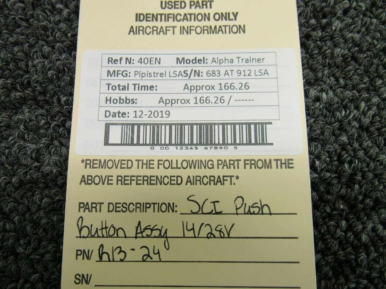 R13-24 Pipistrel LSA Alpha Trainer SCI Push Button Assy (Volts: 14/28)
