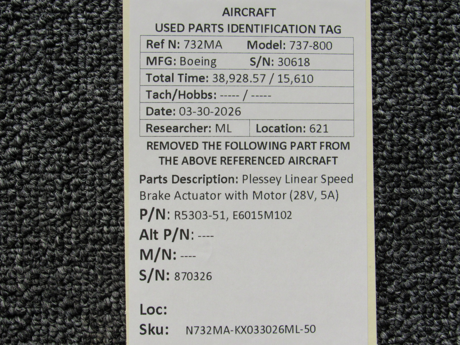 Every part is carefully inspected throughout our process and several times before it goes online. Most items are sold as-removed, just as they came off the aircraft. These parts are not functionally tested. What we do provide is clear photos, full traceability when available, pricing that reflects the as-removed condition, and a no-nonsense 90-day return window.