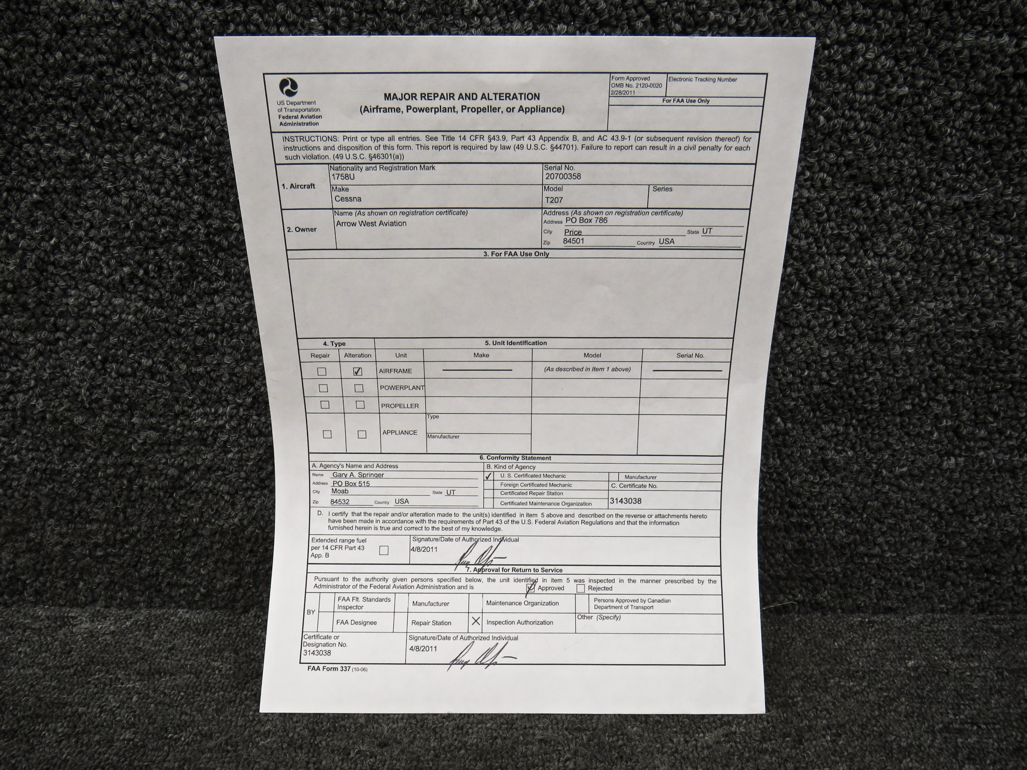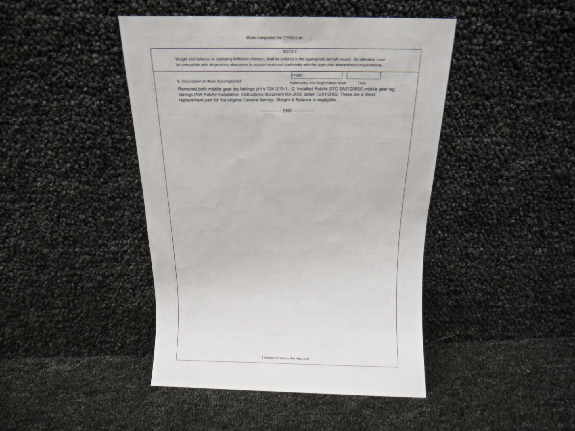 - Comes with STC paperwork and 337 form