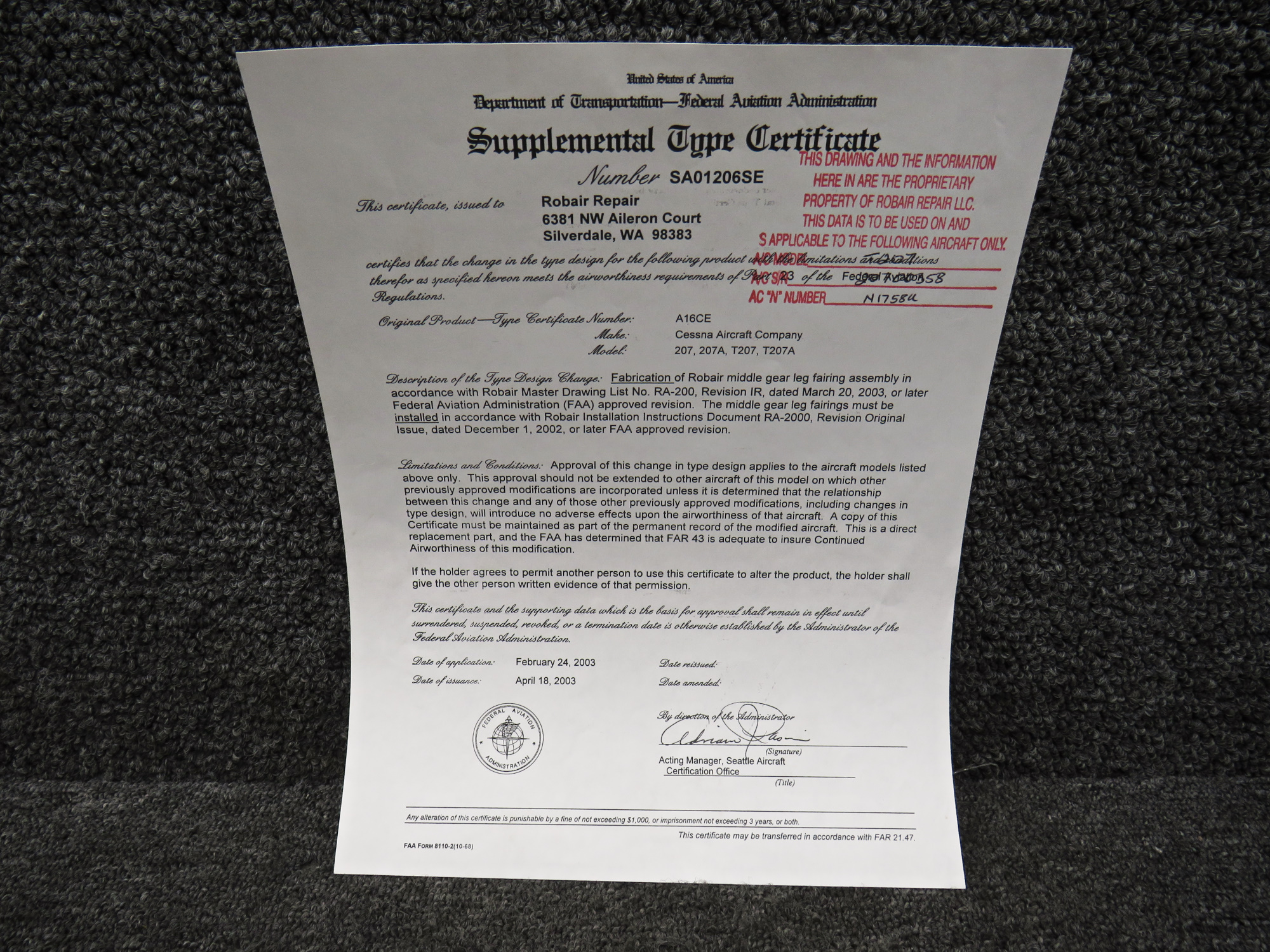 - STC Number: SA01206SE