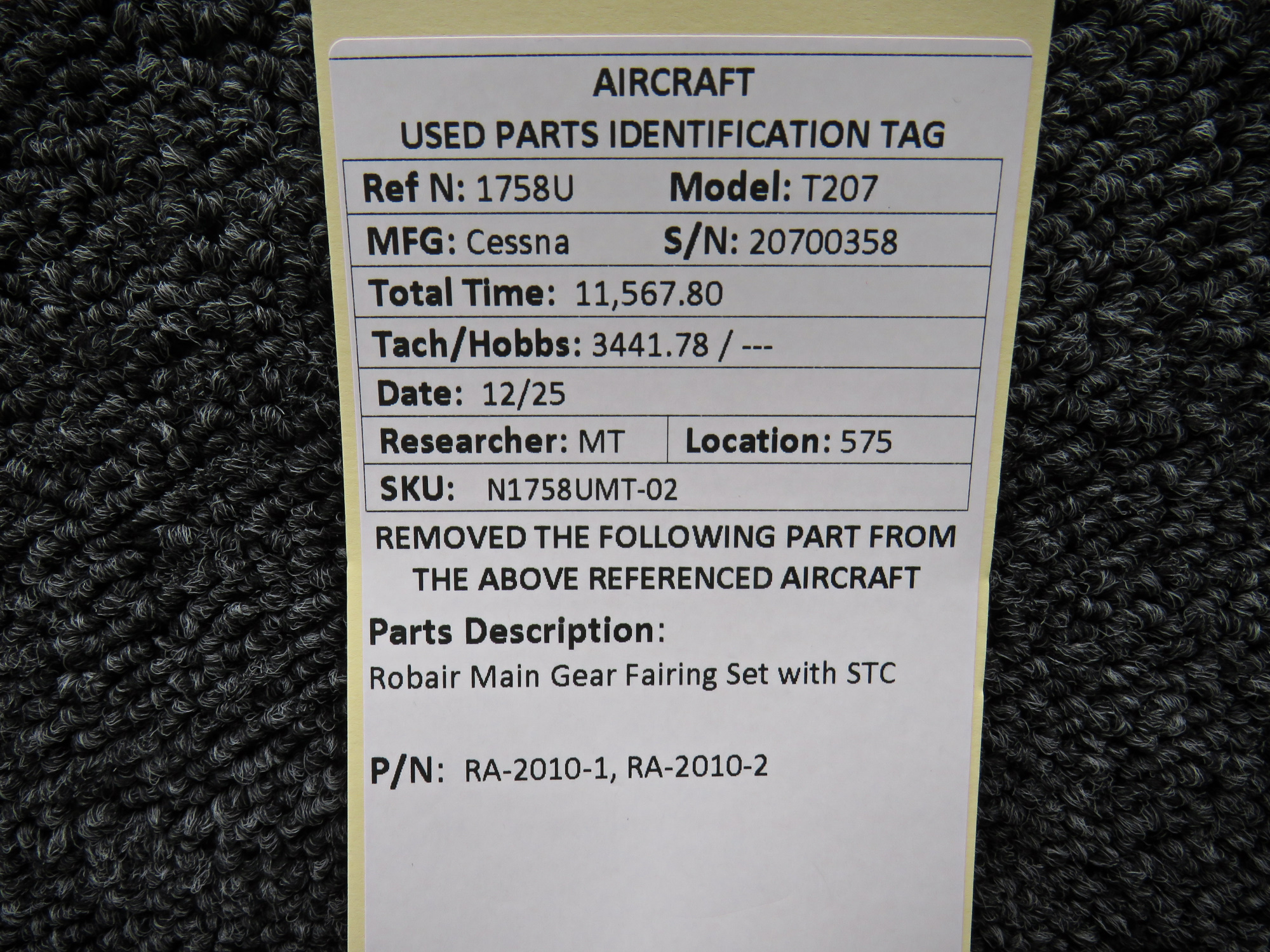 - LH Fairing Part Number: RA-2010-1