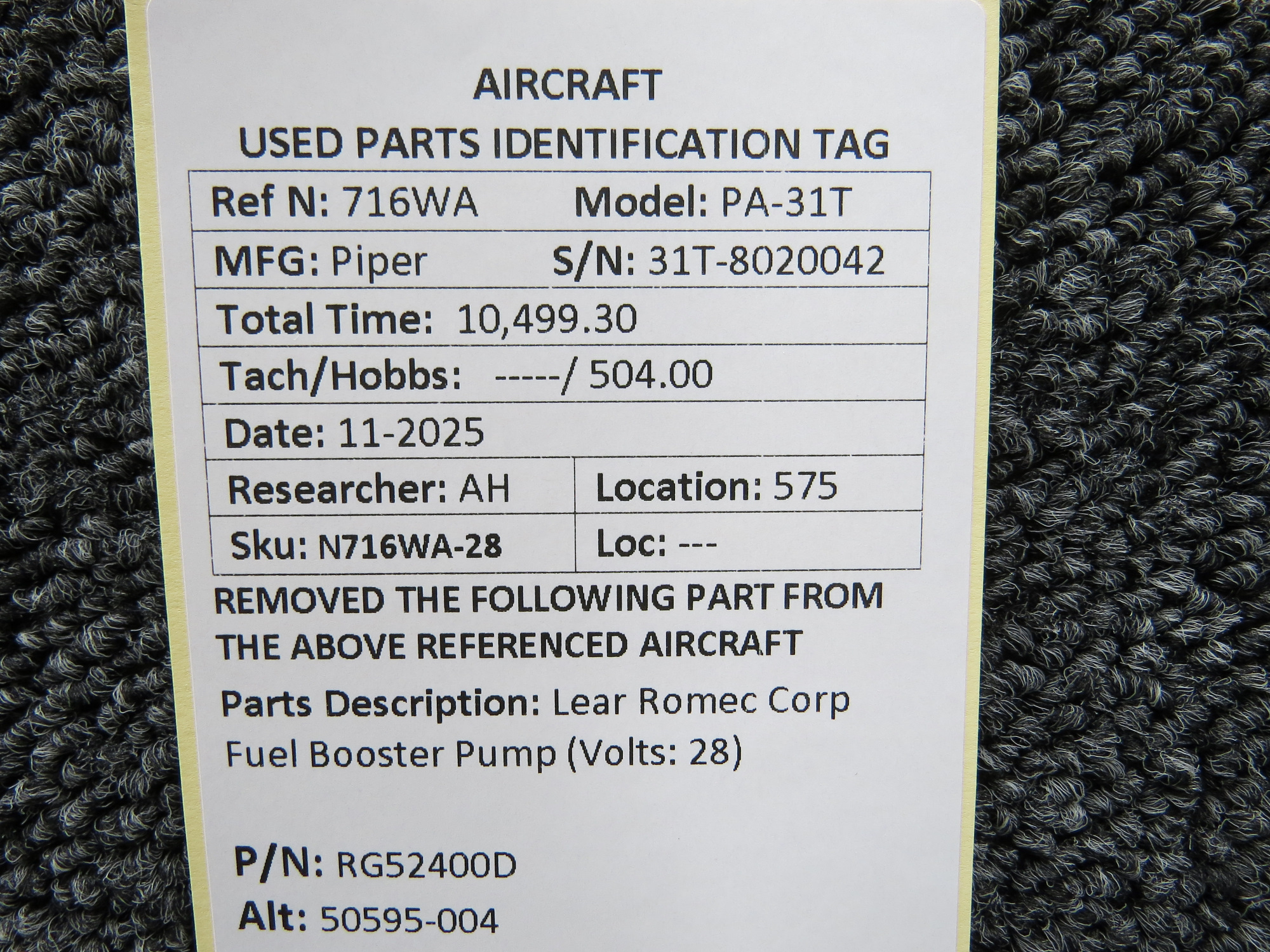 Unless specifically noted, most of our used airplane parts are sold in the condition they were removed, which means you should expect the usual signs of wear and tear.