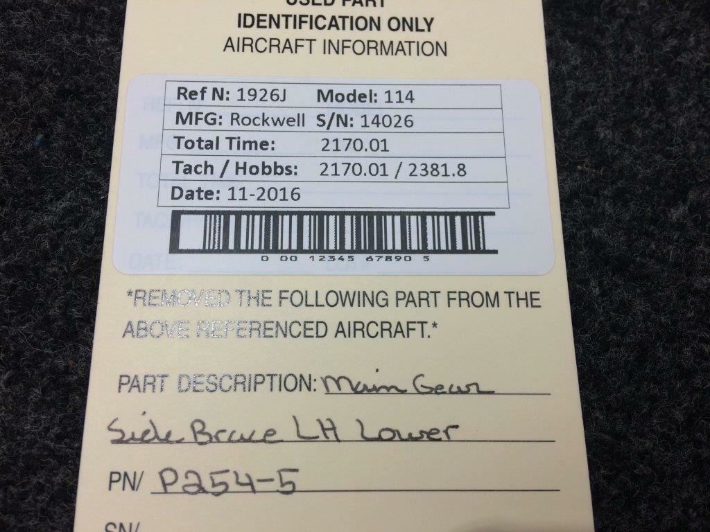 Rockwell 114 Main Gear Side Brace LH Lower P/N P254-5