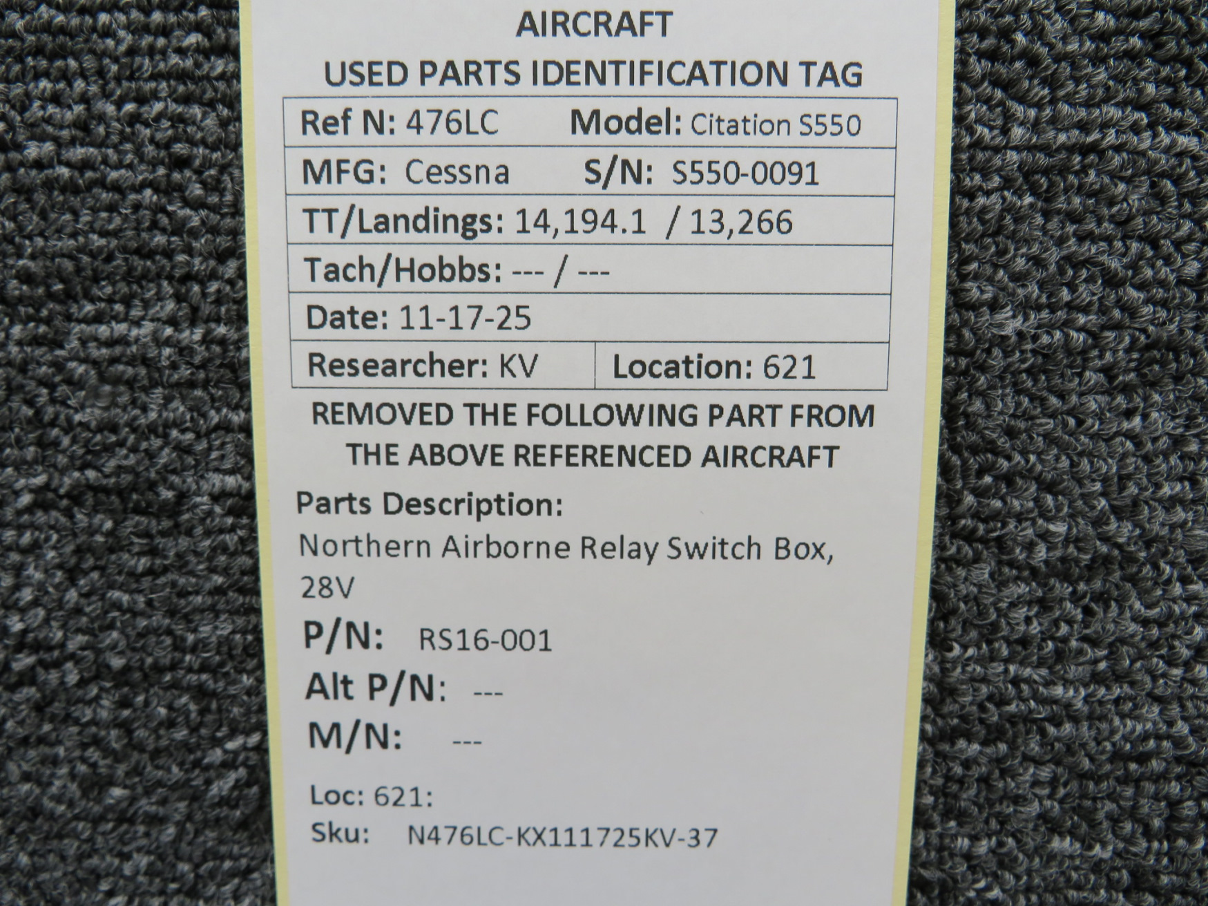 Unless specifically noted, most of our used airplane parts are sold in the condition they were removed, which means you should expect the usual signs of wear and tear.
