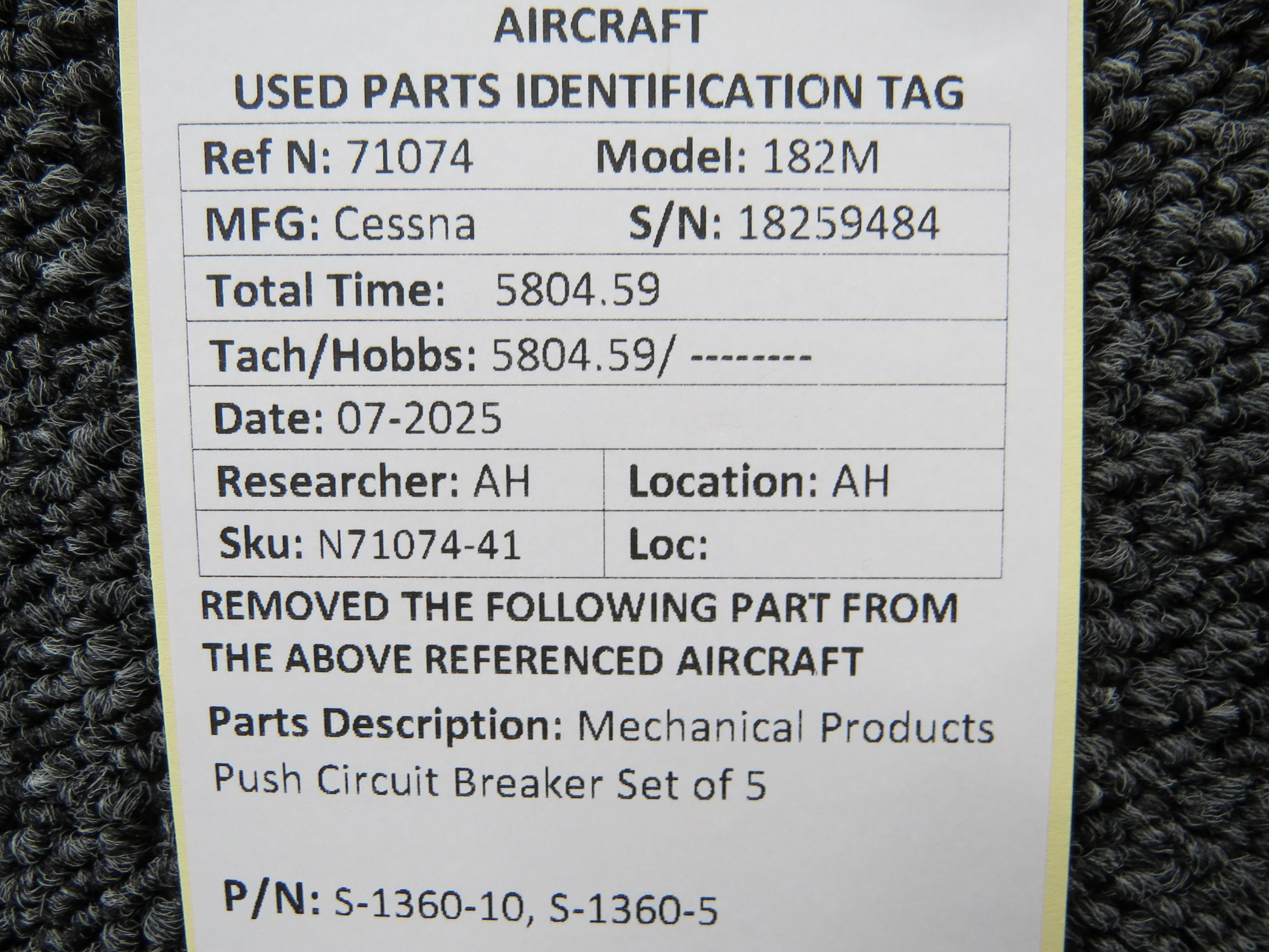 Unless specifically noted, most of our used airplane parts are sold in the condition they were removed, which means you should expect the usual signs of wear and tear.