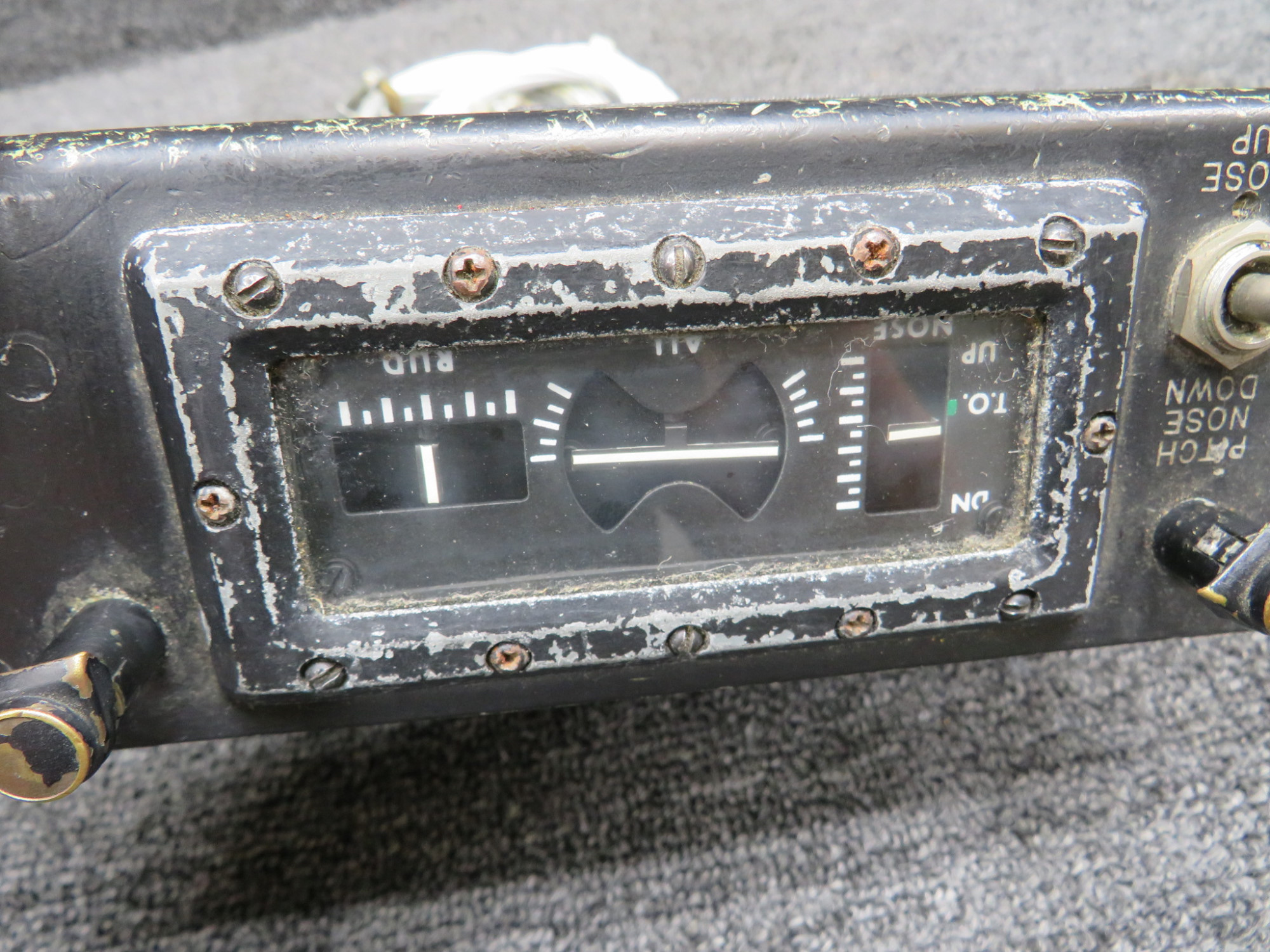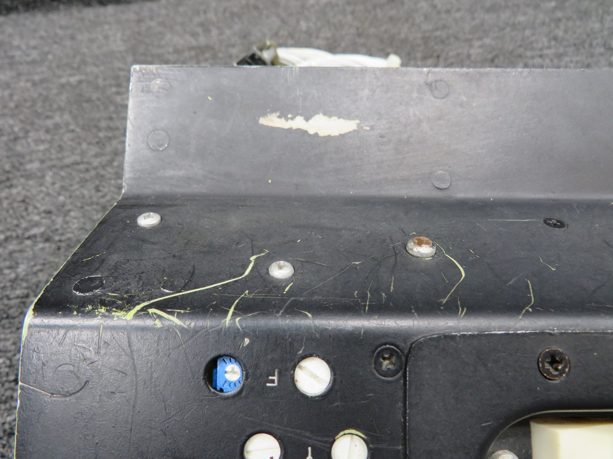 - Mounting bracket and face of trim tab indicator have scuffed/scratched paint all over