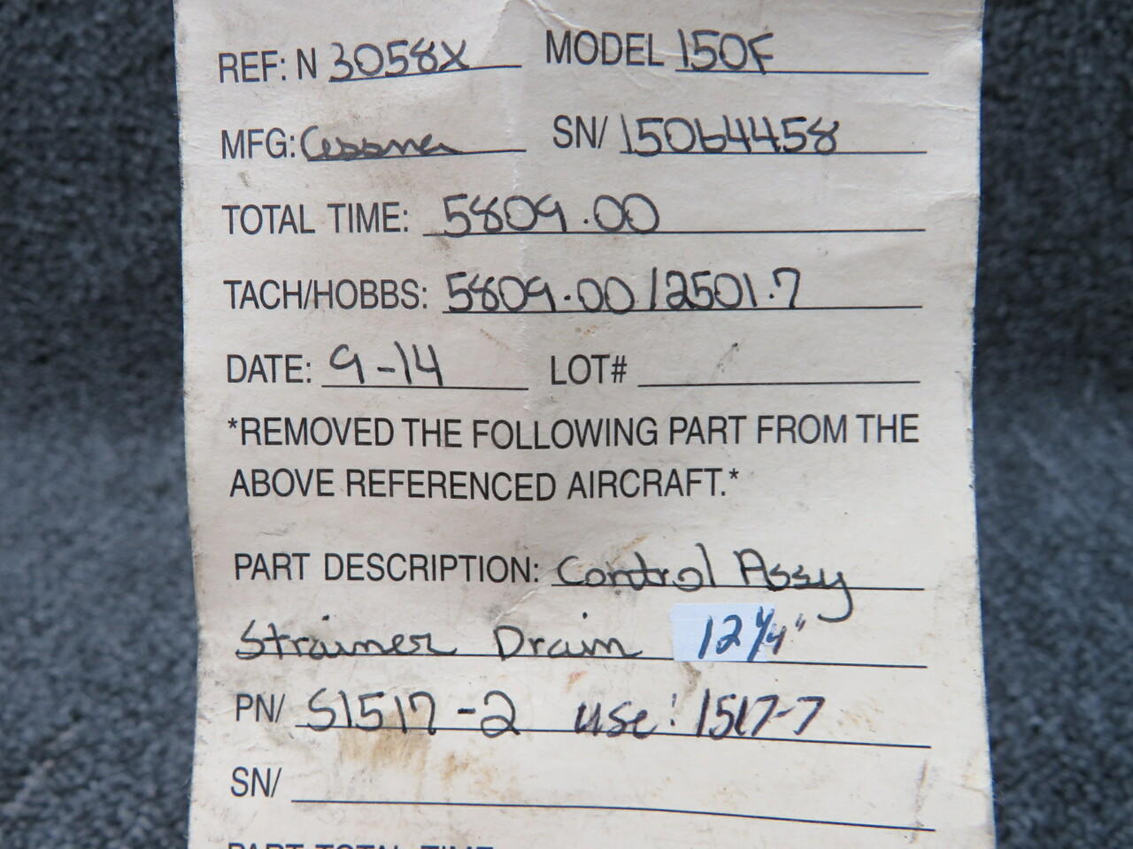 S1517-2 (USE: S1517-7) Cessna 150F Control Assembly Strainer Drain (12.25")
