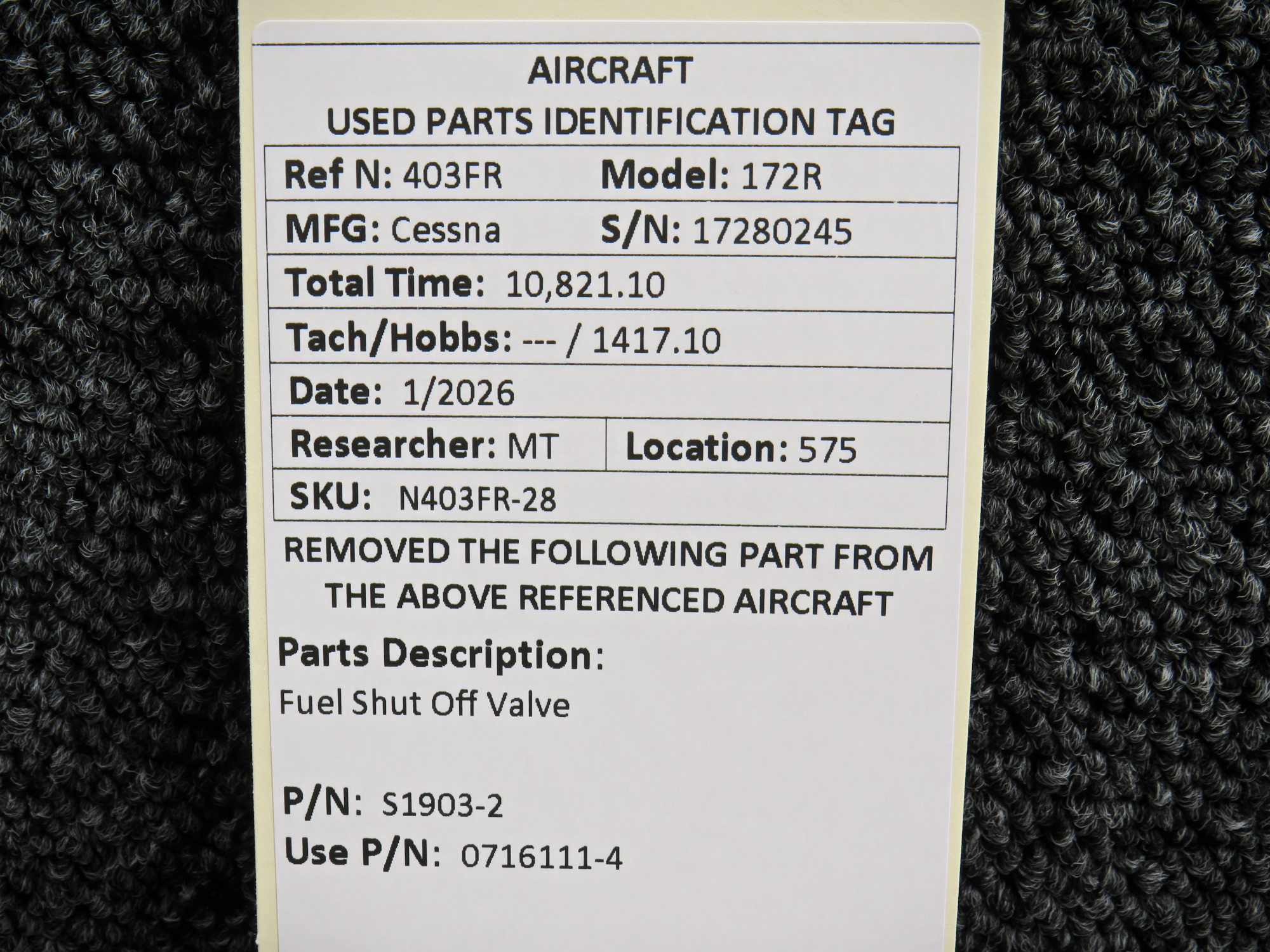 Every part is carefully inspected throughout our process and several times before it goes online. Most items are sold as-removed, just as they came off the aircraft. These parts are not functionally tested. What we do provide is clear photos, full traceability when available, pricing that reflects the as-removed condition, and a no-nonsense 90-day return window.