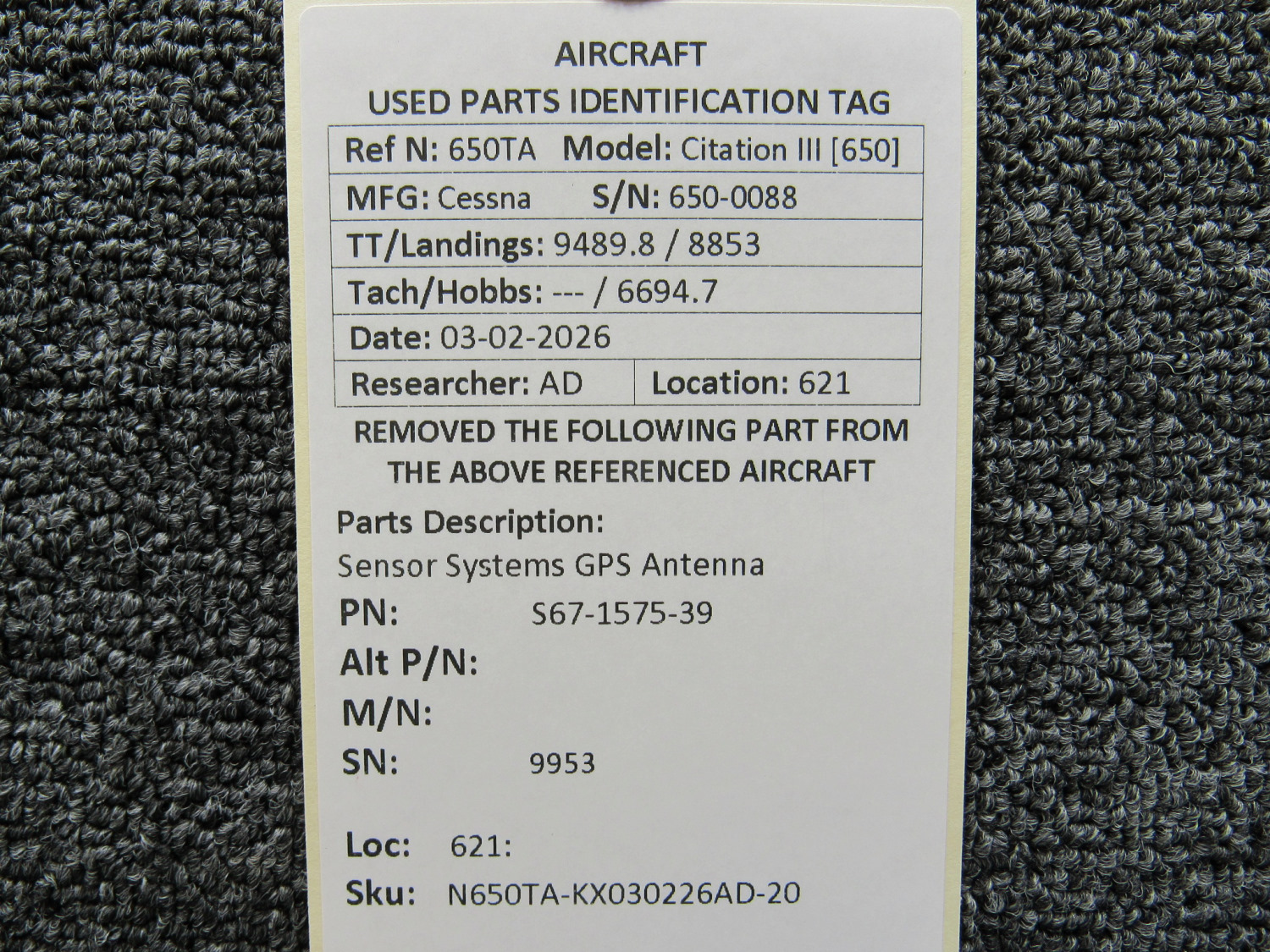 Every part is carefully inspected throughout our process and several times before it goes online. Most items are sold as-removed, just as they came off the aircraft. These parts are not functionally tested. What we do provide is clear photos, full traceability when available, pricing that reflects the as-removed condition, and a no-nonsense 90-day return window.