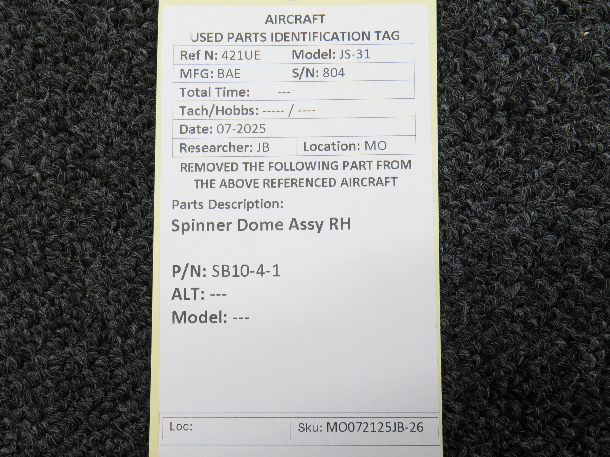 Unless specifically noted, most of our used airplane parts are sold in the condition they were removed, which means you should expect the usual signs of wear and tear.