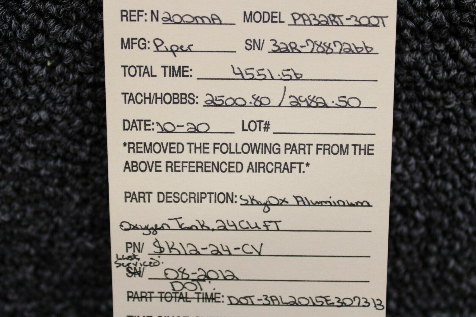 SK12-24-CV Piper PA32RT-300T Skyox Aluminum Oxygen Tank Assy (24 Cubic Feet)