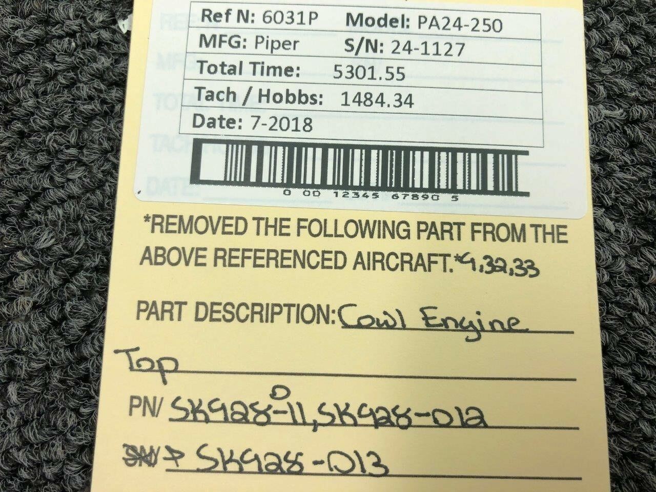 SK928-011 / SK928-012 / SK928-013 Piper PA24-250 Cowling Engine Top