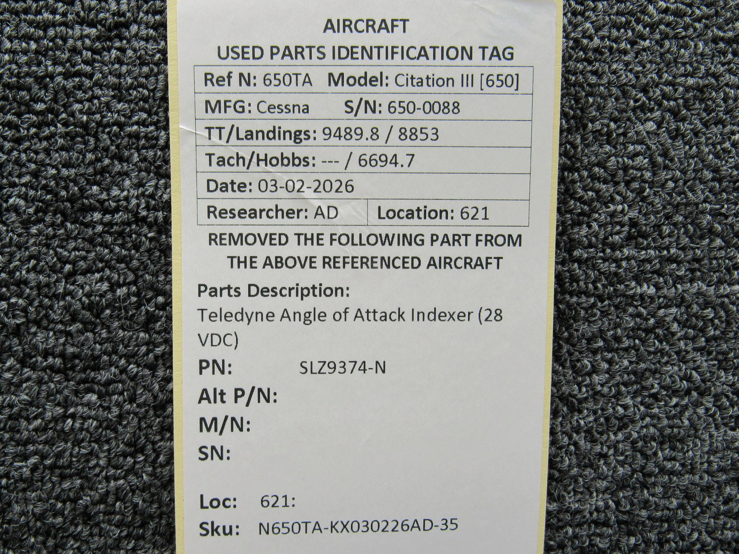 Every part is carefully inspected throughout our process and several times before it goes online. Most items are sold as-removed, just as they came off the aircraft. These parts are not functionally tested. What we do provide is clear photos, full traceability when available, pricing that reflects the as-removed condition, and a no-nonsense 90-day return window.