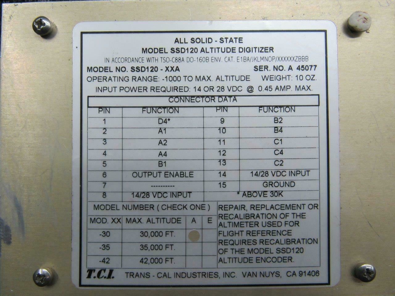 SSD120-30 Cessna 172M Trans Cal Altitude Digitizer (V: 14/28)