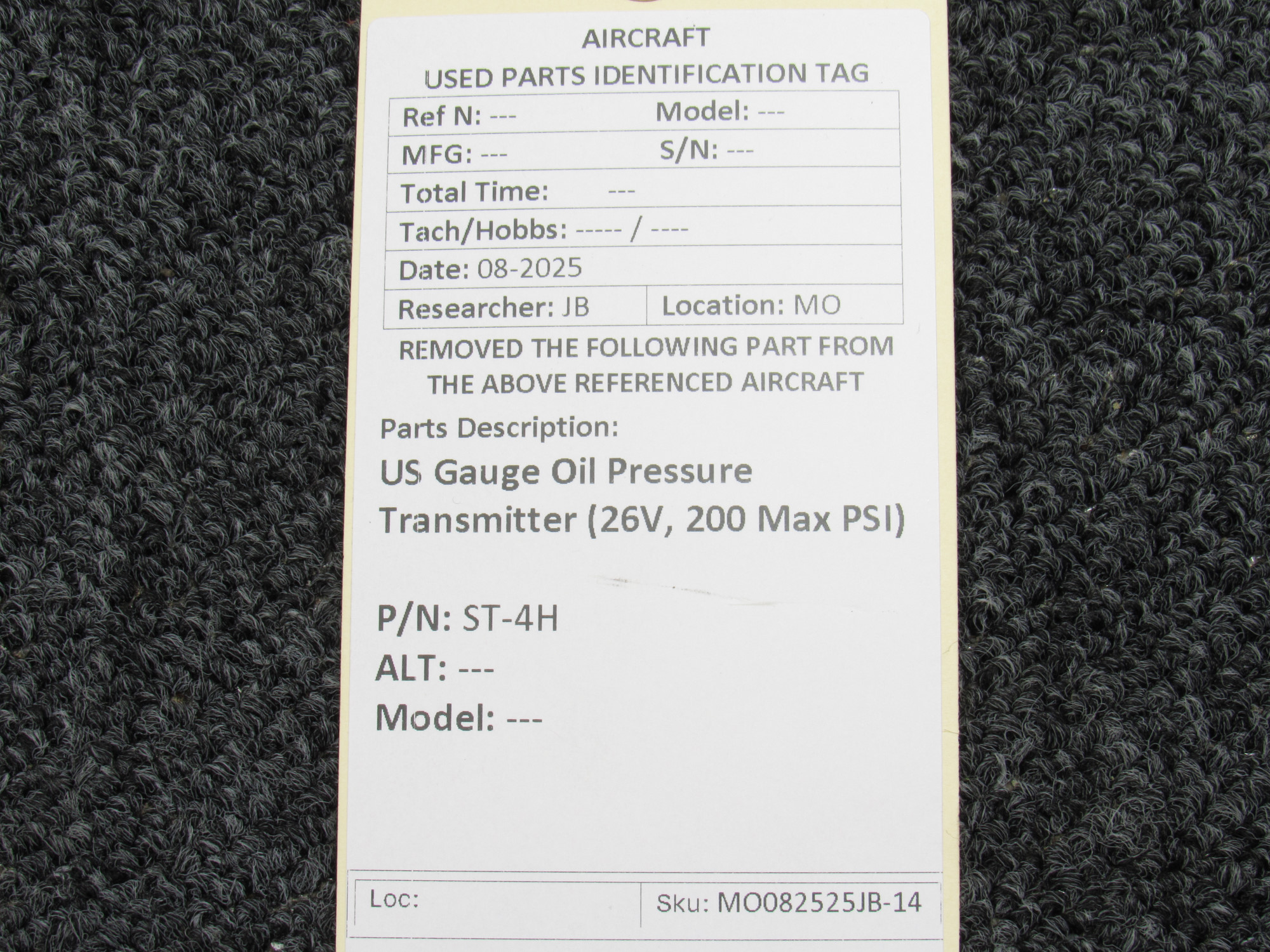 Unless specifically noted, most of our used airplane parts are sold in the condition they were removed, which means you should expect the usual signs of wear and tear.