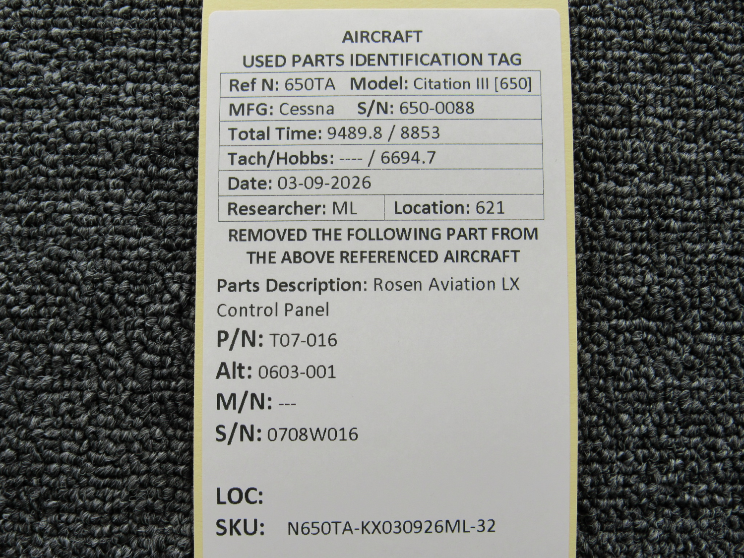 Every part is carefully inspected throughout our process and several times before it goes online. Most items are sold as-removed, just as they came off the aircraft. These parts are not functionally tested. What we do provide is clear photos, full traceability when available, pricing that reflects the as-removed condition, and a no-nonsense 90-day return window.