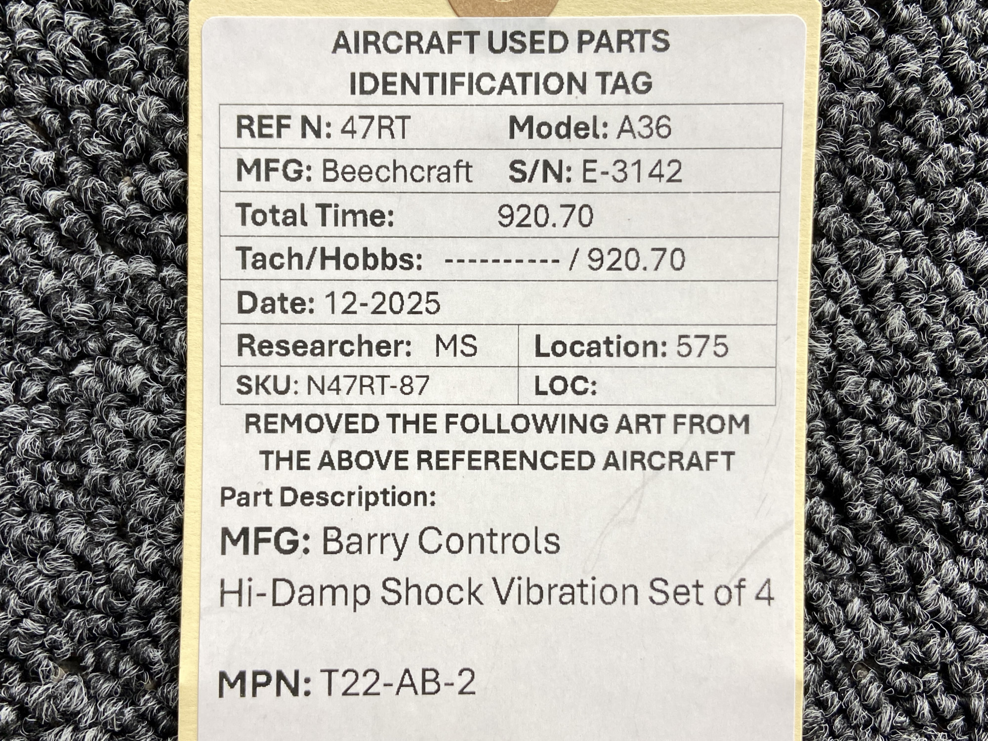Unless specifically noted, most of our used airplane parts are sold in the condition they were removed, which means you should expect the usual signs of wear and tear.