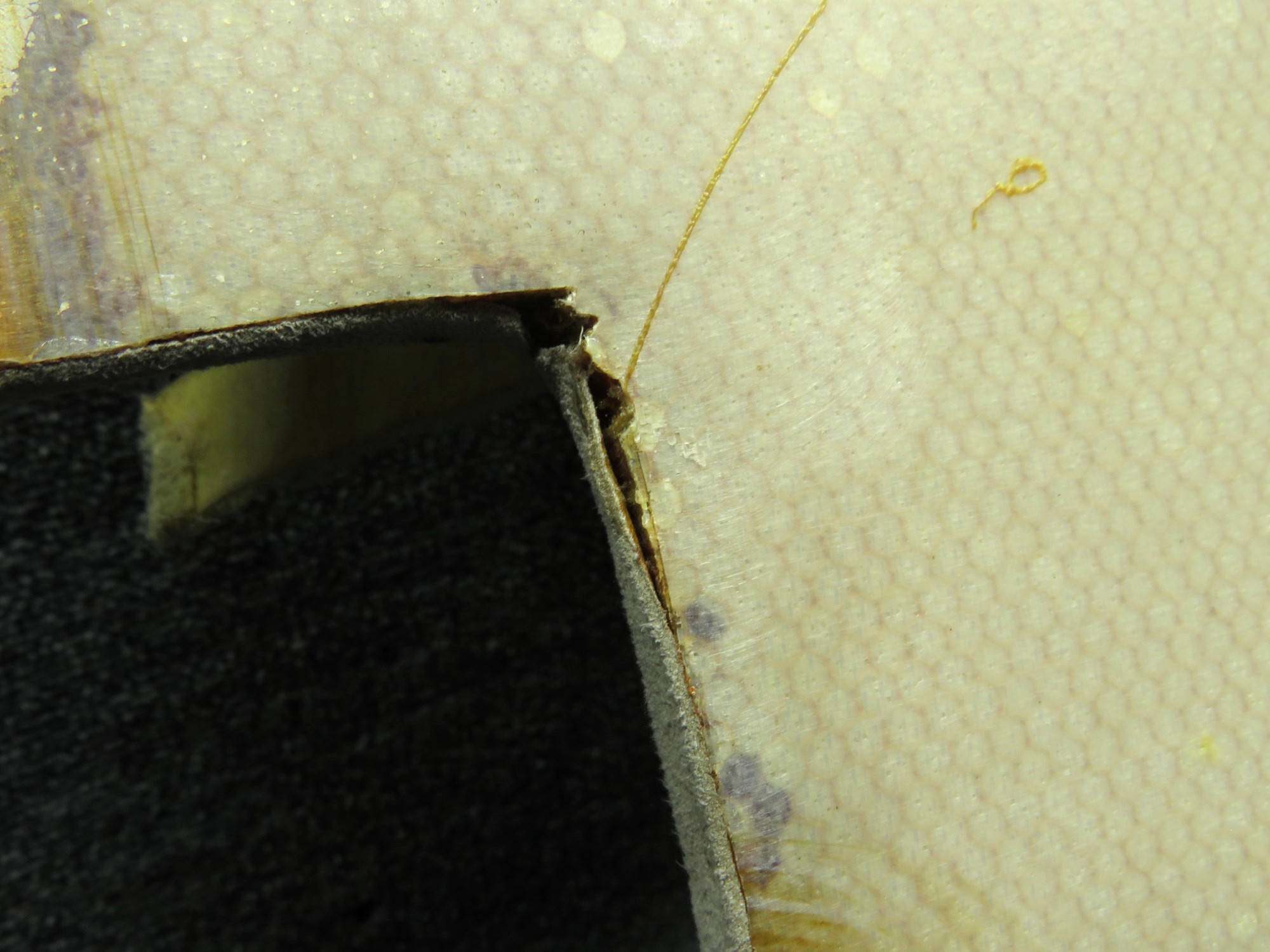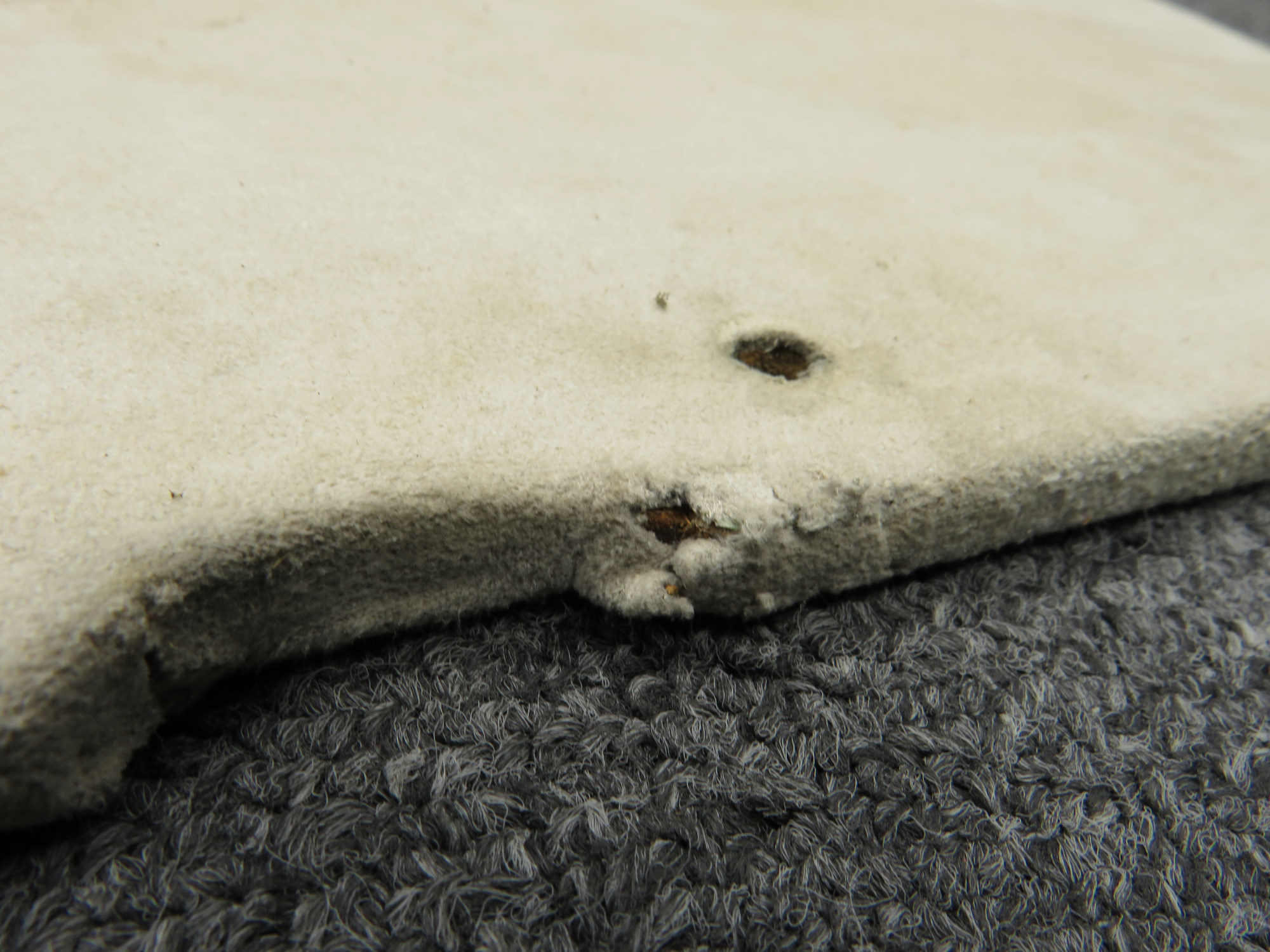 - Slight discoloration/minor staining on fabric